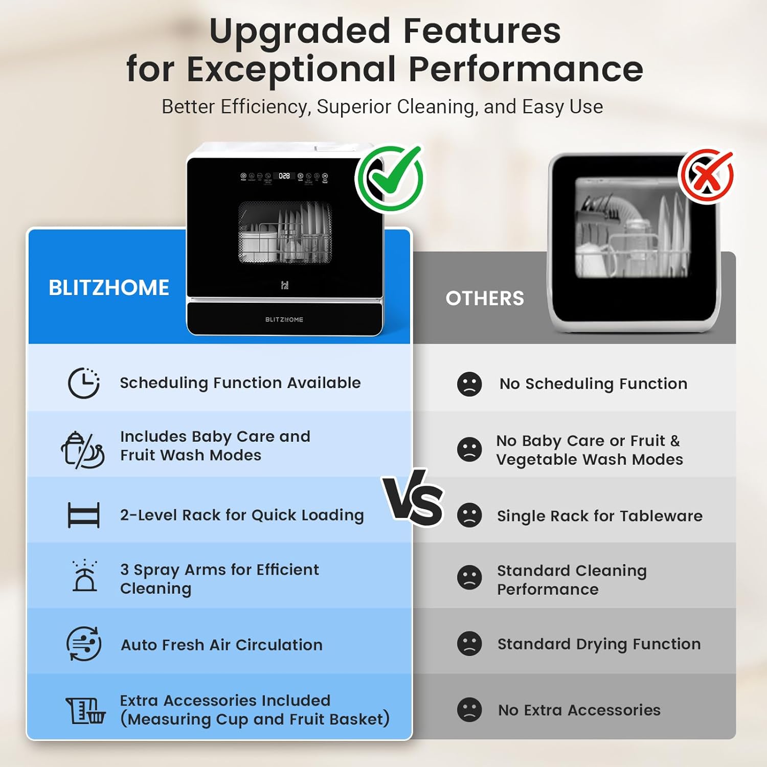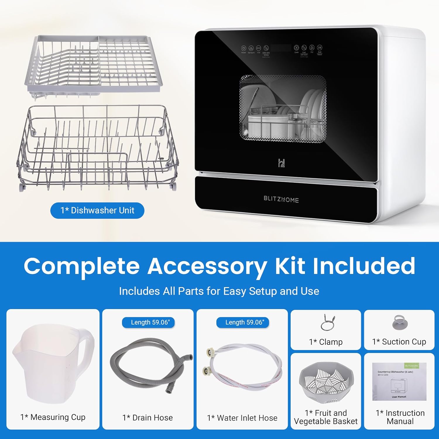 Upgraded Options for Comfort: Benefit from the 24-hour delayed begin perform, permitting you to schedule washes round your routine. The two-level rack design holds extra dishes, decreasing loading time. It additionally contains important equipment like a fruit basket, measuring cup, and drainage hose, inlet hose, clamp, suction cup