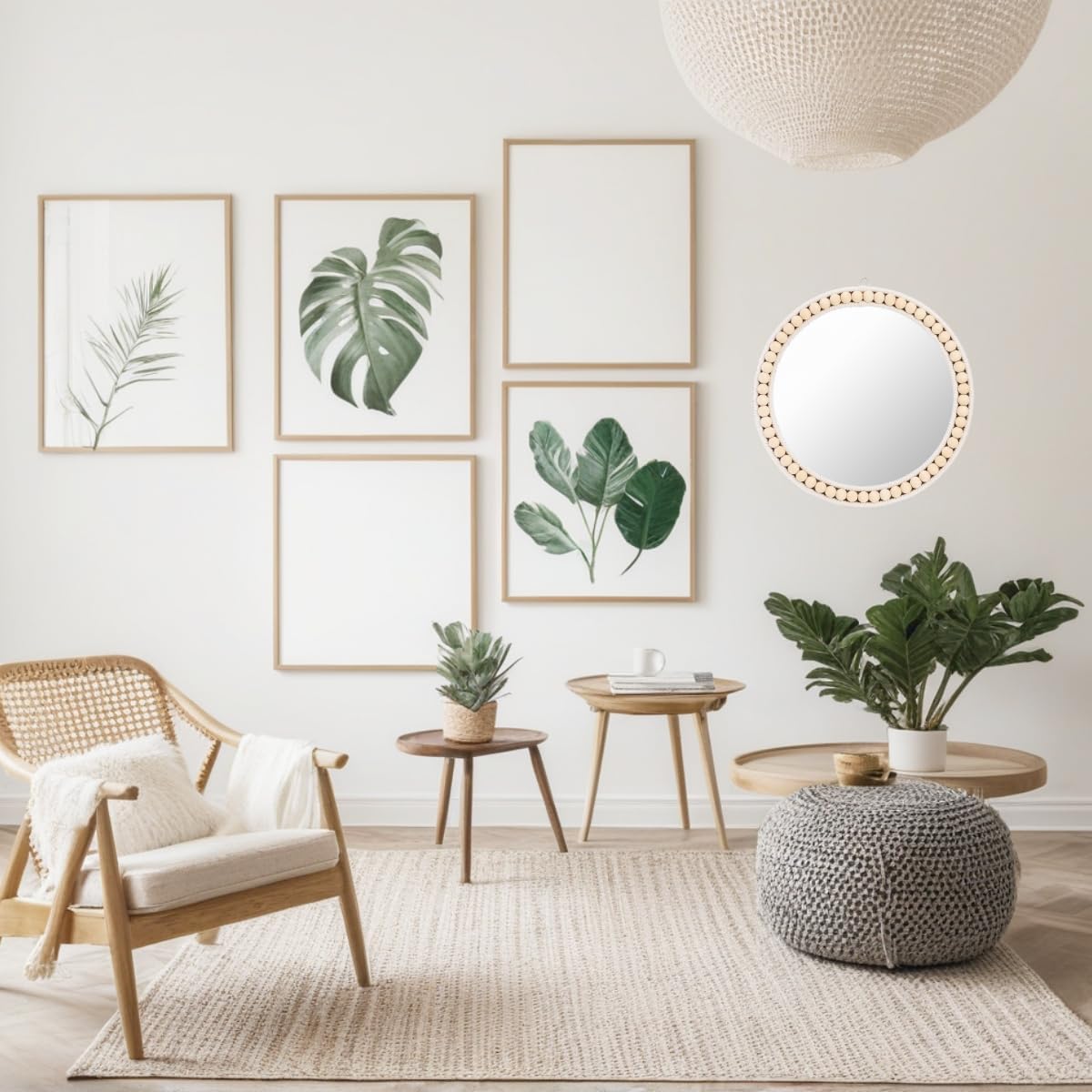 Straightforward to Set up: Our spherical mirror with white picket beads has been pre-mounted with a hook behind the circle mirror backboard for secure set up, as a way to simply hold the mirror on the wall instantly with no stress.