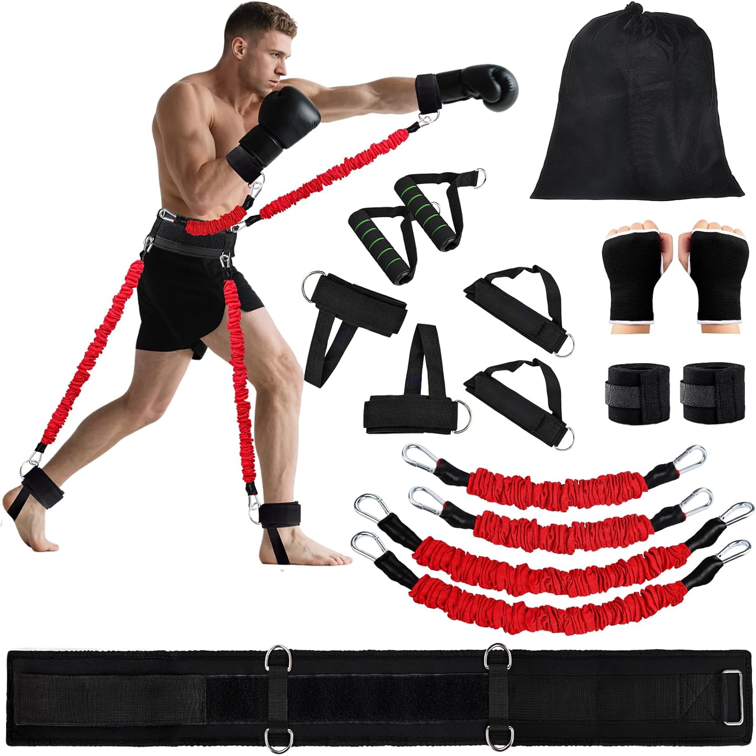 Anytime Anyplace Anybody: The boxing resistance bands set is designed with an adjustable belt (max waist dimension of the belt = 39.3 inches) and adjustable ankle straps to suit most physique varieties. Whether or not you’re a man or a girl, you need to use these boxing bands as a health accent for boxing workouts at residence, residence aerobics, or as out of doors health gear.