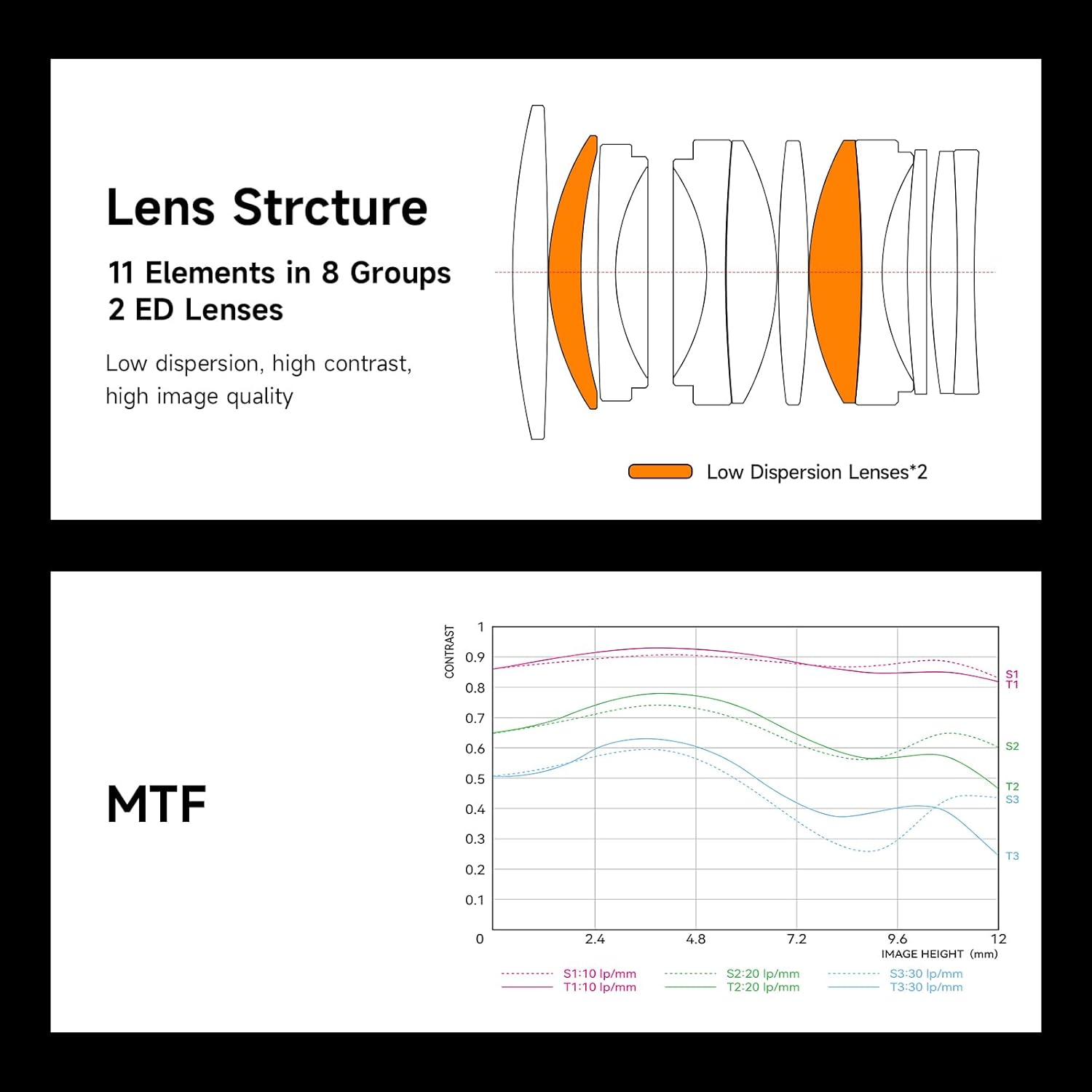 HD Image High quality: 8 units of 11 optical constructions, and a couple of ED lens, successfully management dispersion whereas making certain sharpness, making the picture clear and sharp from the middle to the sides.