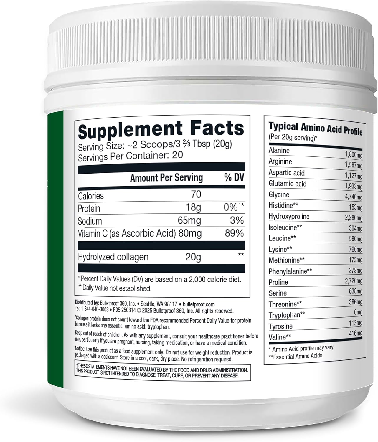 Comprises one 17.6-ounce jar Bulletproof Unflavored Collagen Peptides