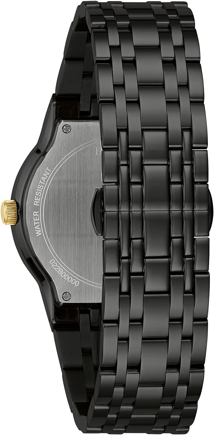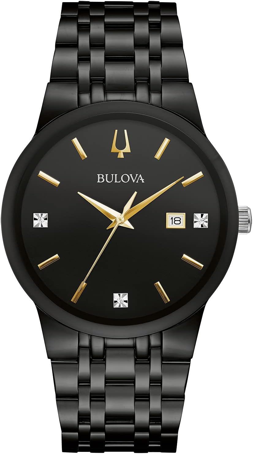 Mannequin Quantity 98D166 Assortment Fashionable- Futuro Clasp Sort Deployant Clasp with Push Buttons Dial Colour Black Dial Accent Diamond Accents; Gold-Tone Accents Case Materials Stainless Metal Case Colour Black Case Width 40mm Case Size 40mm Band Colour Black Band Materials Stainless Metal Crystal Materials Metalized Mineral Crystal Water Resistance 0030M Know-how Quartz Gem Sort/Depend 3 Diamonds