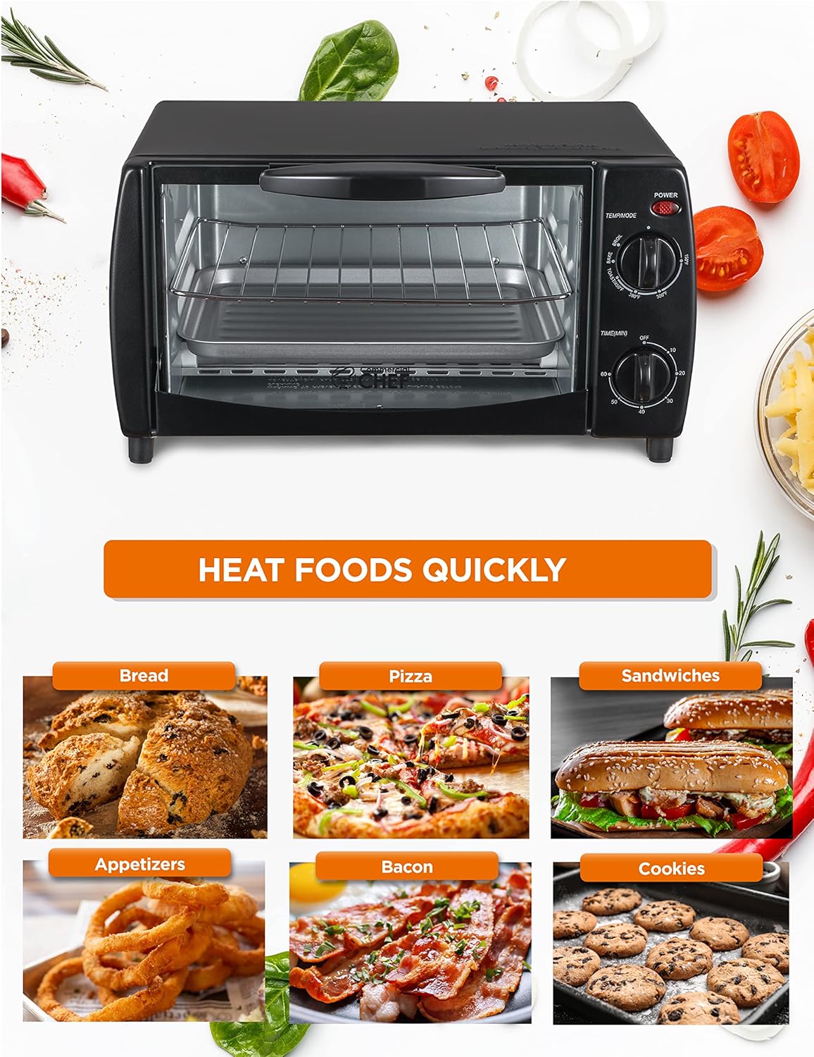 Save Time Cooking: In relation to a 4 slice toaster ovens countertop, our COMMERCIAL CHEF bread toaster is probably the most handy. Warmth bread, pizza, & different meals rapidly with this oven toaster!