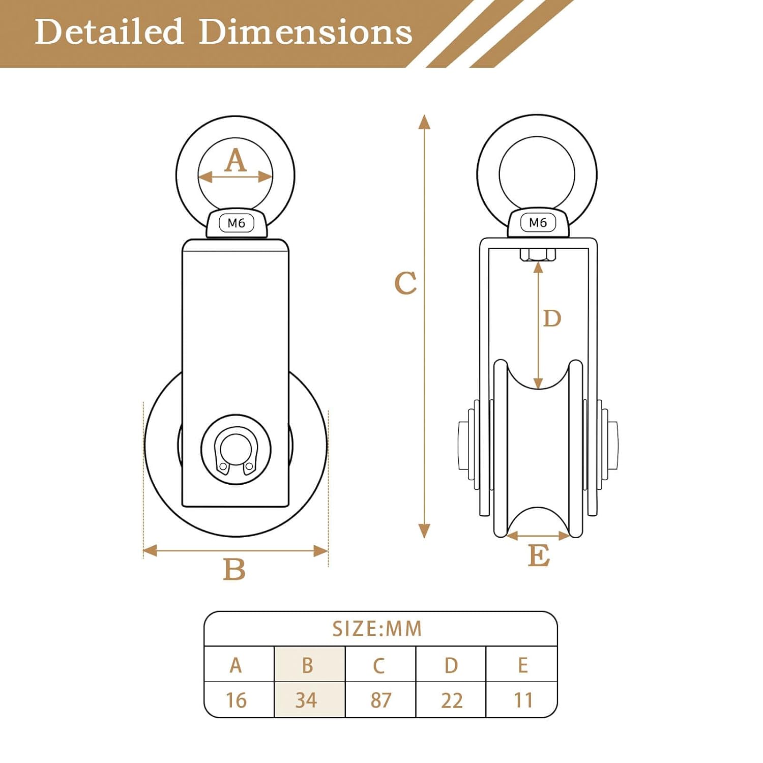 Double Bearing Design: The pulley is supplied with two 608 bearings, which significantly reduces the friction power, and makes the pulley rotate extra easily, quietly with out jamming
