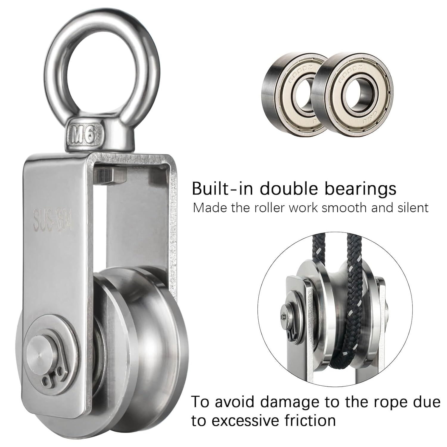 Materials: The pulley consists of 304 and 201 stainless-steel materials, which is powerful and sturdy. It has absolute anti-rust capacity indoors. 201 stainless-steel can’t be used open air for a very long time