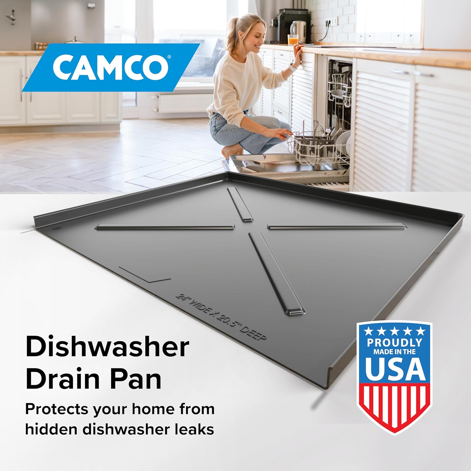 Shield your property from hidden dishwasher leaks with the Camco Dishwasher Drain Pan. Designed to sit down beneath your dishwasher, this RV kitchen accent presents a dependable barrier in opposition to leaks that may in any other case go unnoticed till in depth injury happens. Crafted for sturdiness, this camper important is constructed to final with out rusting, corroding, or cracking, offering long-lasting safety on your flooring, cupboards, and partitions. This Camco Dishwasher Pan for leaks includes a entrance opening that enables water to empty to the entrance of the dishwasher, making it straightforward to establish leaks rapidly. By receiving an early warning of a dishwasher leak, hose failure, or water condensation, you possibly can take immediate motion to handle the problem earlier than it escalates right into a pricey restore. Camco’s Drain Pan is designed to suit most traditional dishwasher fashions. Its compact measurement ensures a comfortable and safe match whereas nonetheless offering ample protection to guard your surrounding surfaces from potential leaks.
