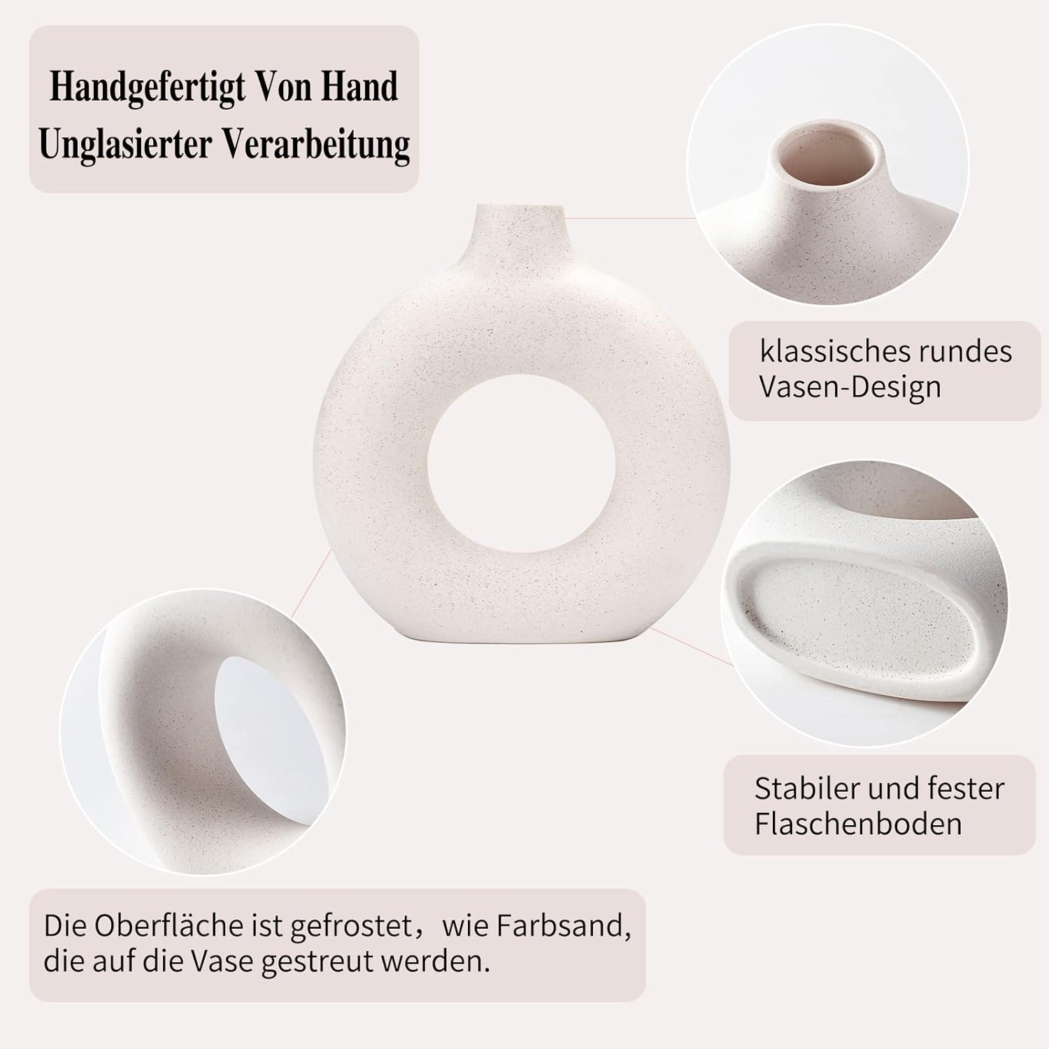 CEMABT White Donut Vase Hole Ceramic Vase for Flowers Handmade Minim…