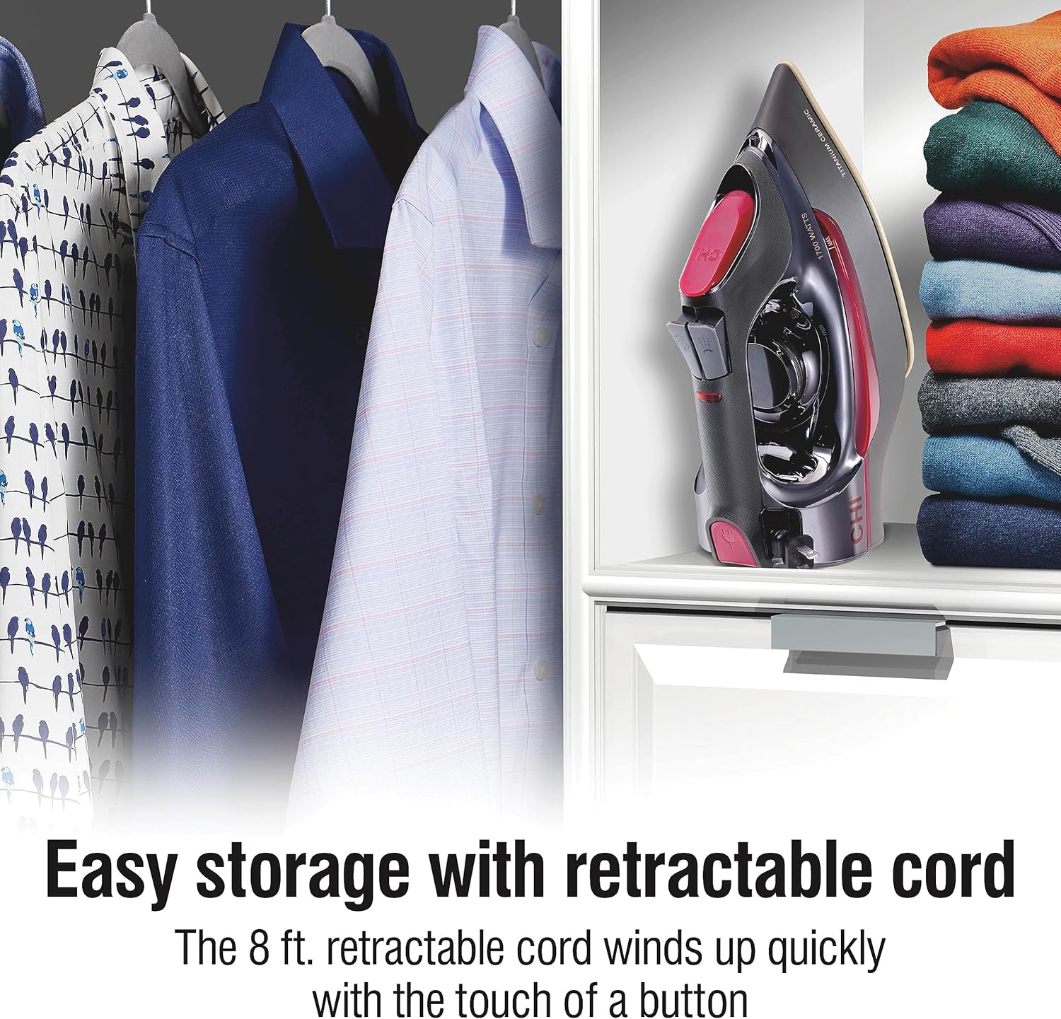 LESS WAITING — HEATS UP IN LESS THAN A MINUTE: The CHI retractable twine iron heats up shortly and evenly so you’ll be able to take away wrinkles from each type of material, from the thickest cottons to the thinnest silks and synthetics.