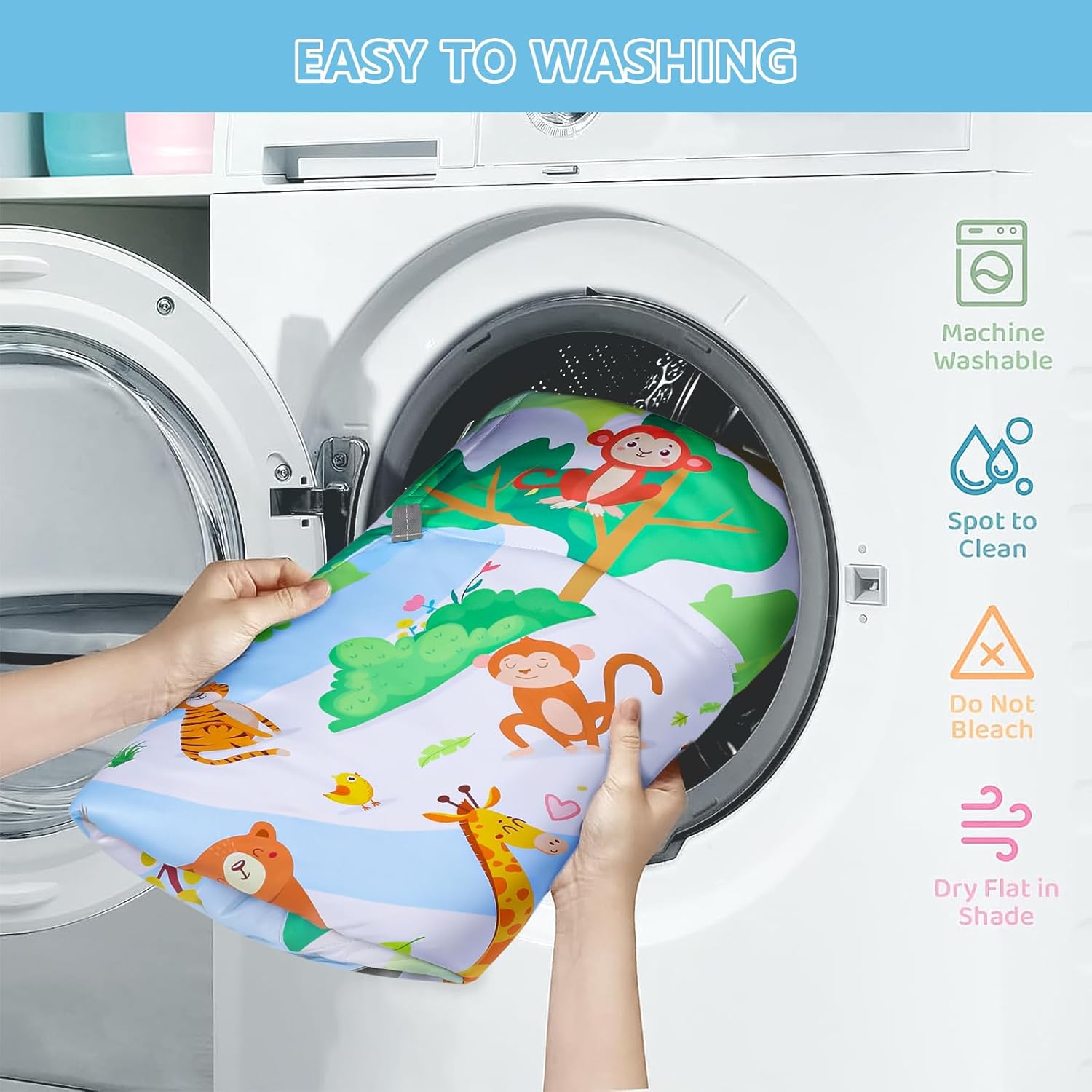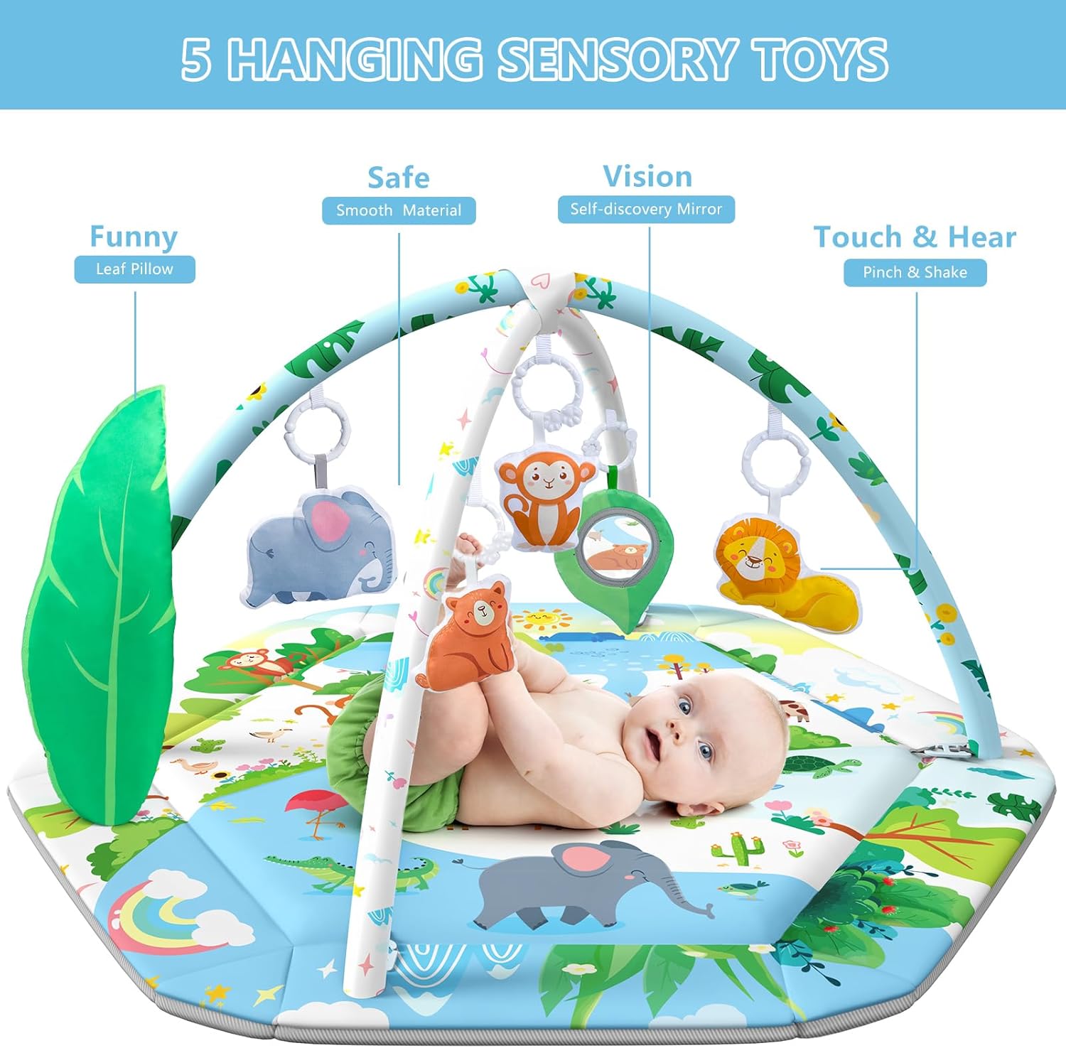 Mushy Protected and Simple to Clear : The newborn gymnasium play mat is constructed from high-quality polyester and cotton, thick, delicate, and easy contact, secure and cozy for child skins. Mushy and secure supplies guarantee a pleasant exploration for infants whereas defending them from potential impacts. small stains may be wiped immediately, whereas the machine wash operate handles bigger areas, saving treasured time and power, offering a clear and hygienic play space.