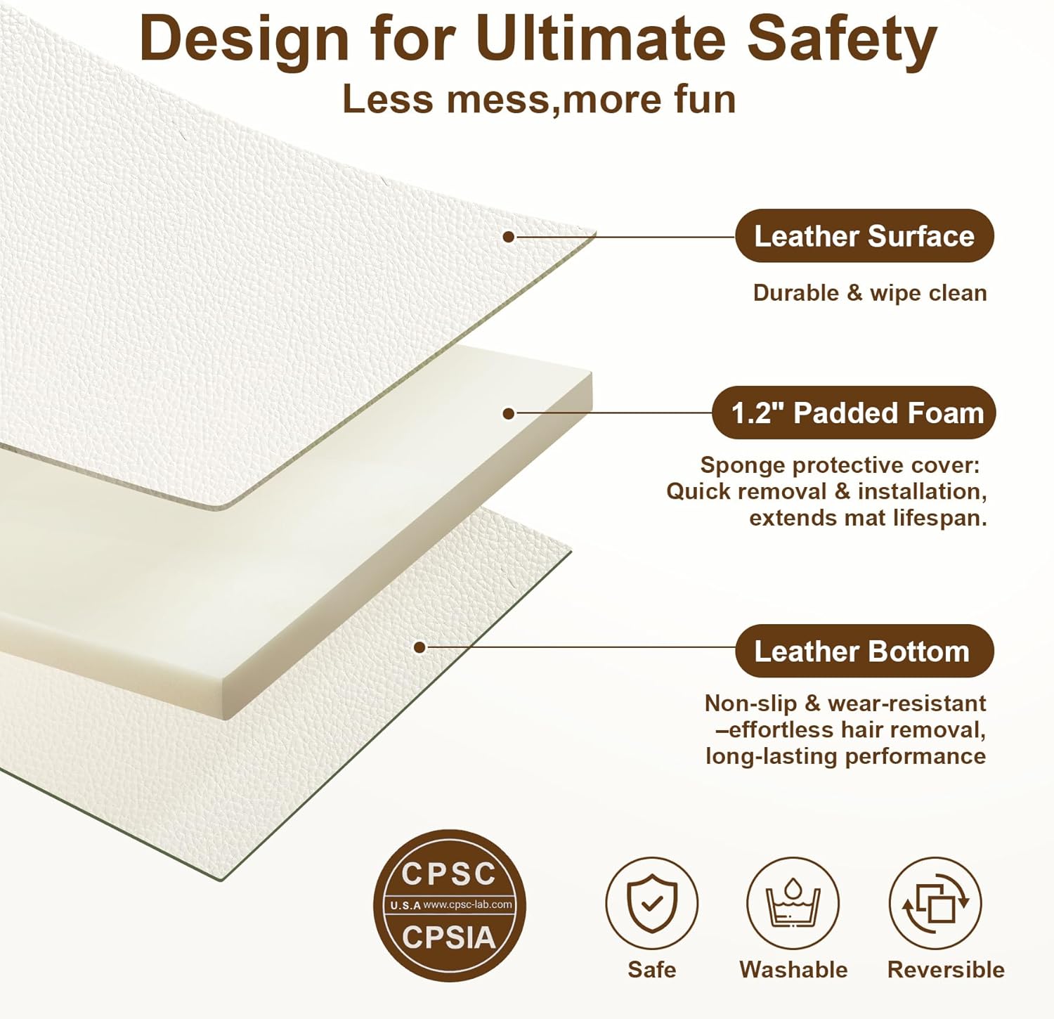 Wipe Clear Play Mat: Either side are vegan leather-based for straightforward cleansing. The leather-based floor is totally waterproof and stain-resistant, making it good for spills, messes, and every day play. A easy wipe retains it trying nearly as good as new!