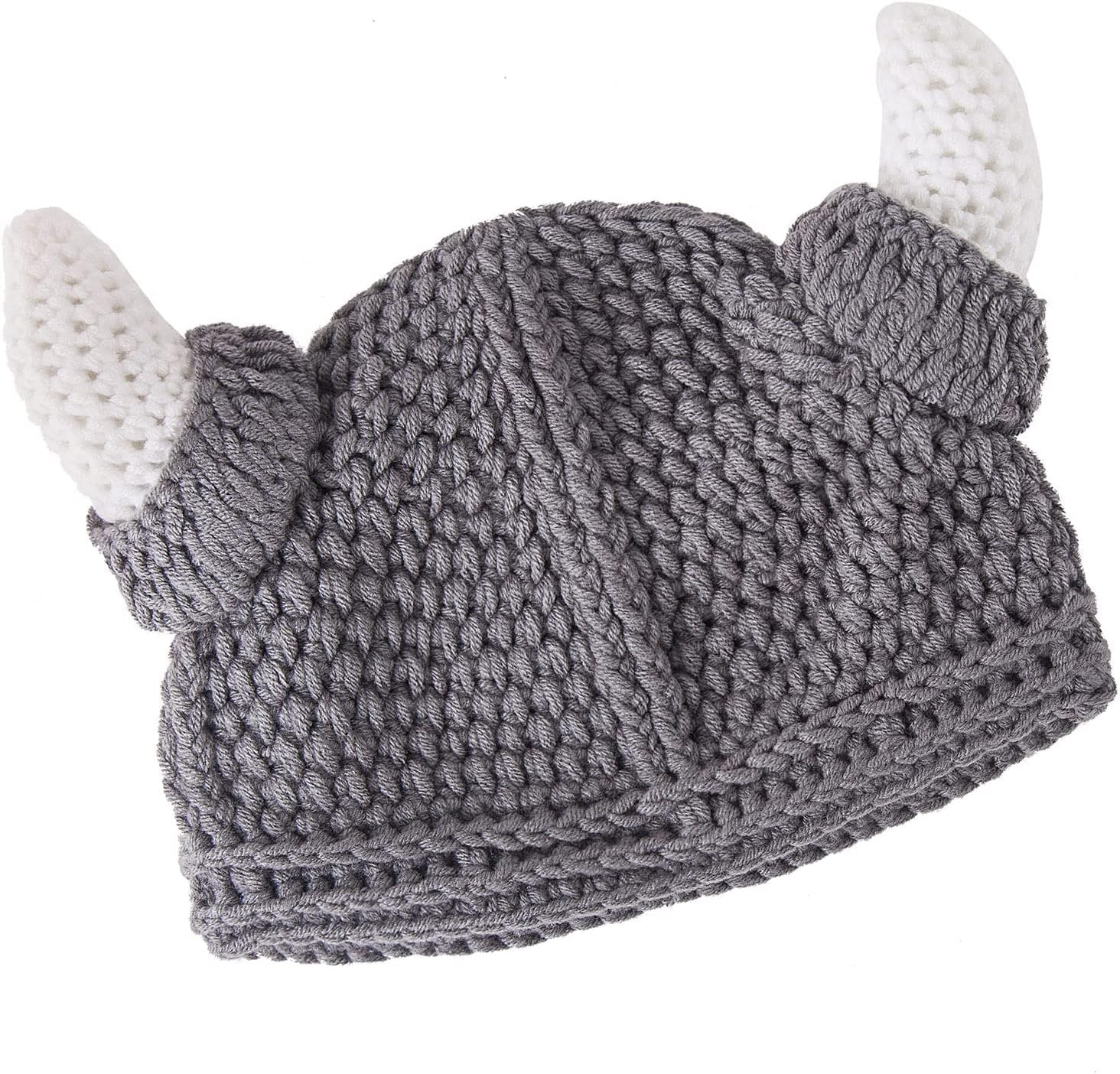Grownup & Child Beard Viking Knit Hat Barbarian Bull Horn Crochet Handmade Knitted Beanie Cap