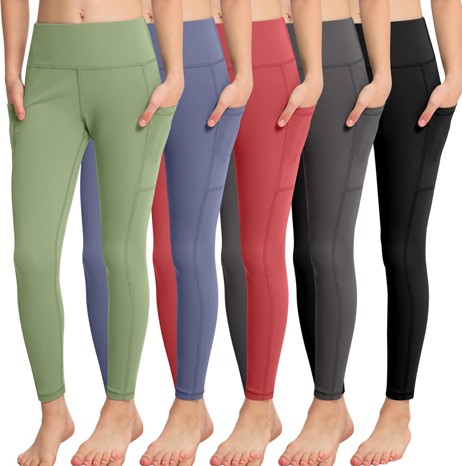Customers find these leggings comfortable, soft, and well-made, noting they hold up well through activities and stay up throughout the day. They appreciate the nice colors that look brand new, and one customer mentions they work well for 9-year-olds. Customers like the pockets and consider them an excellent buy for the money.