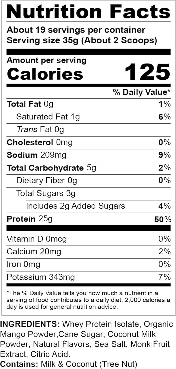 NUTRITIONAL PROFILE: Premium protein powder delivering 25g of protein per serving with solely 125 energy and 5g of complete carbohydrates.