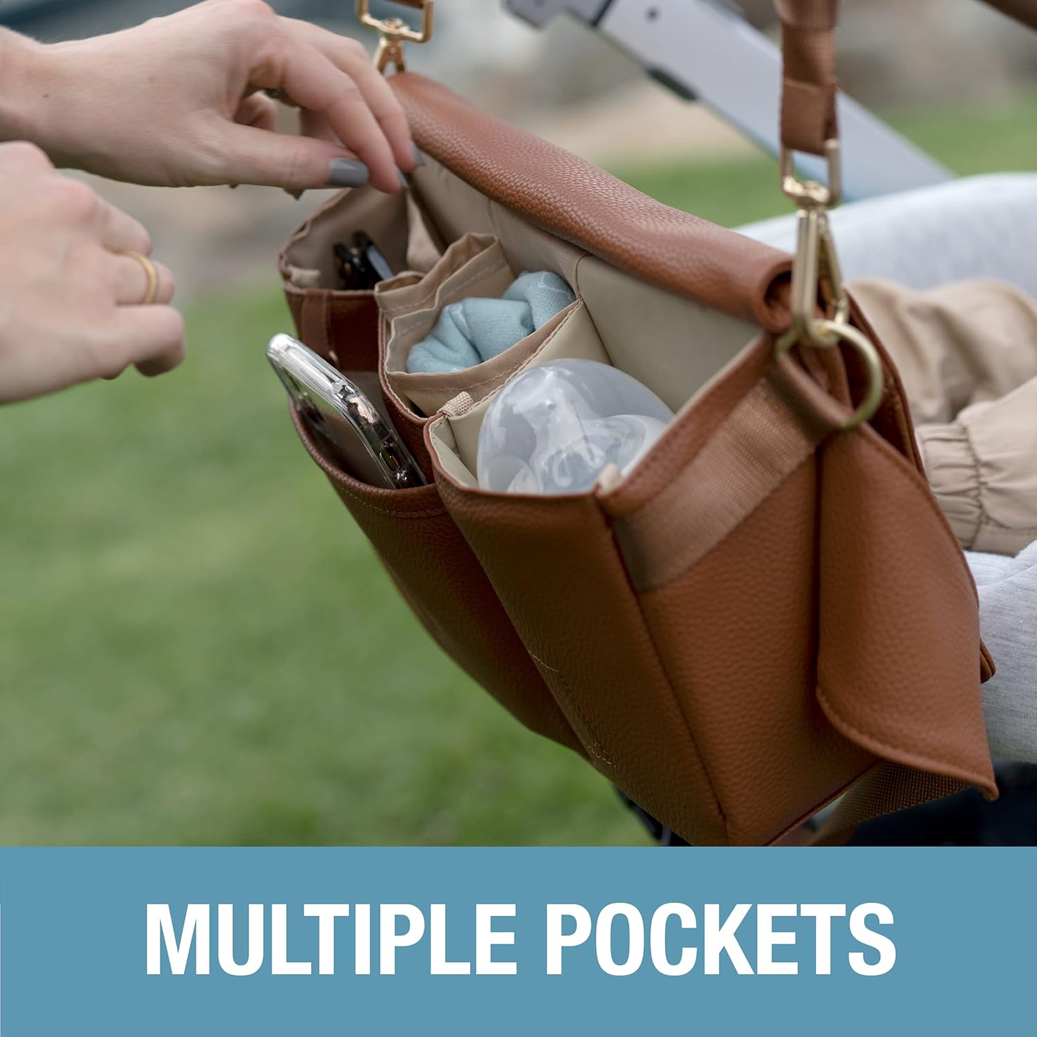 MULTIPLE ORGANIZER POCKETS – Small insulated pocket to maintain child bottles heat or chilly, again zip pocket to retailer additional diapers, wipes, and different child merchandise, entrance pocket and magnetic closure for cellphone and bank cards, and open storage inside for different private gadgets