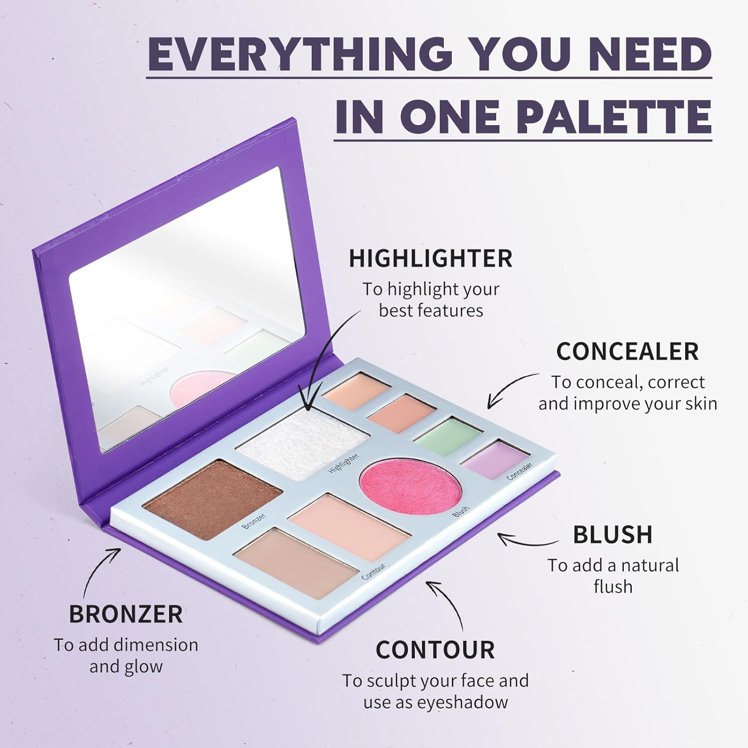 Journey-Pleasant & Time-Saving Make-up: This multi-use contour blush highlighter make-up palette conveniently homes 9 important cosmetics in a single compact pallet that simply suits in your purse, suitcase, backpack, or carry-on, which may be carried anytime and wherever, ideally suited for fast touch-ups or on-the-go use, reminiscent of work, journey and occasion.