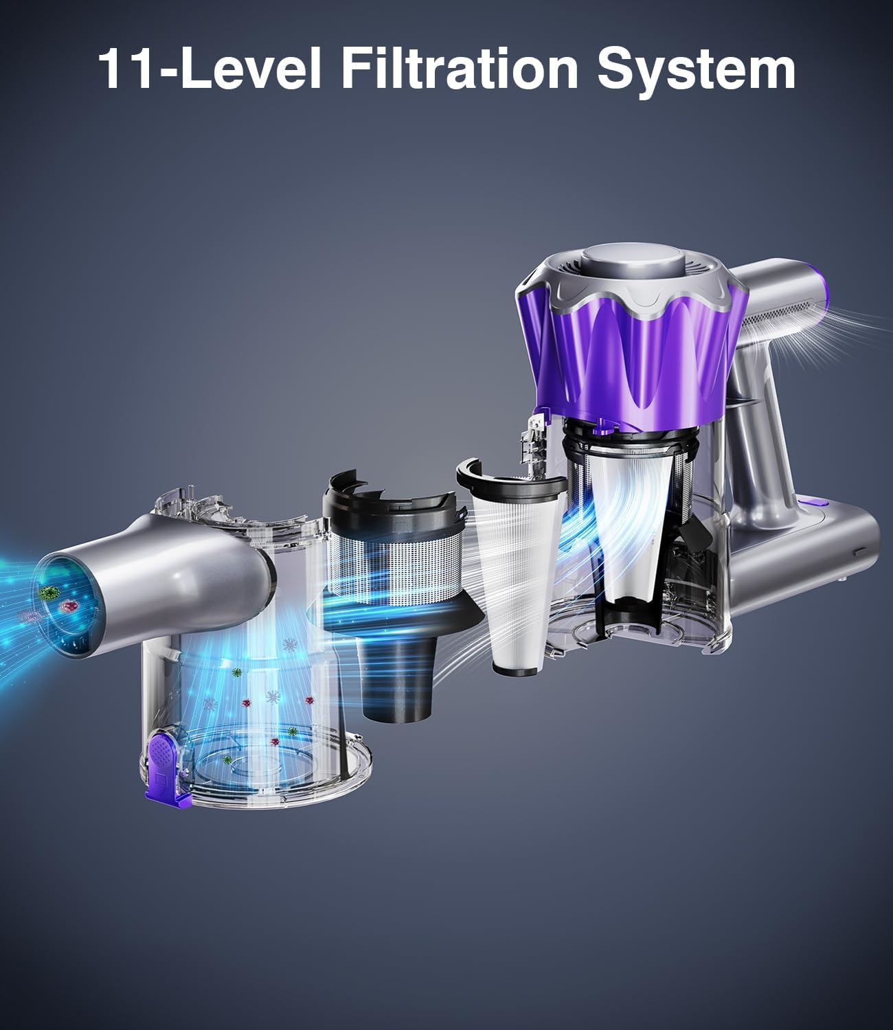𝟏𝟏-𝐋𝐄𝐕𝐄𝐋 𝐅𝐈𝐋𝐓𝐑𝐀𝐓𝐈𝐎𝐍 𝐒𝐘𝐒𝐓𝐄𝐌: Not like different vacuum cleaners, we give attention to strengthening the filtering system with 11 ranges of filtration high quality, by which the prolonged H13 Hepa cartridge has 99.99% filtration price. Take pleasure in dust-free cleansing and breathe recent air each time you utilize it.