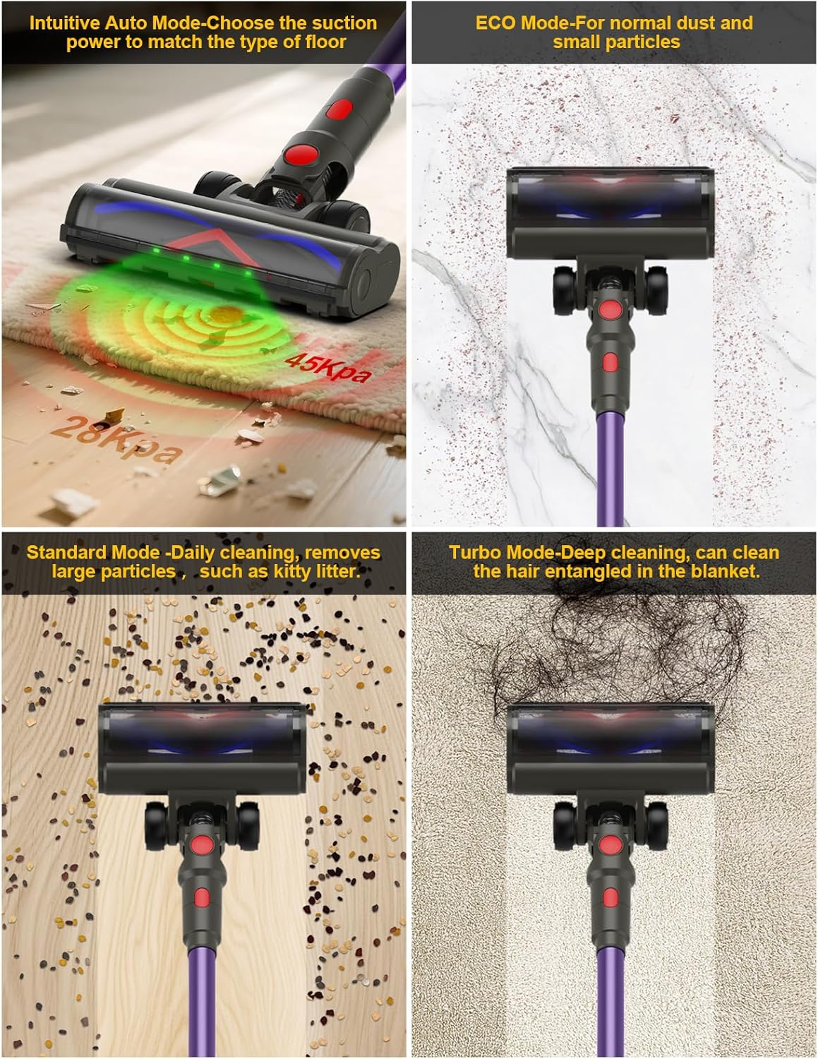 【Removable Battery with 60min Runtime & Sensible LED Show】Vacuum cleaners for dwelling outfitted with a large-capacity removable battery offering as much as 60 minutes runtime in ECO Mode,half-hour in Customary Mode,20 minutes in Turbo Mode . The colour show reveals real-time battery standing. The detachable battery provides cordless comfort with out outlet restrictions, with straightforward charging for ready-to-use operation.