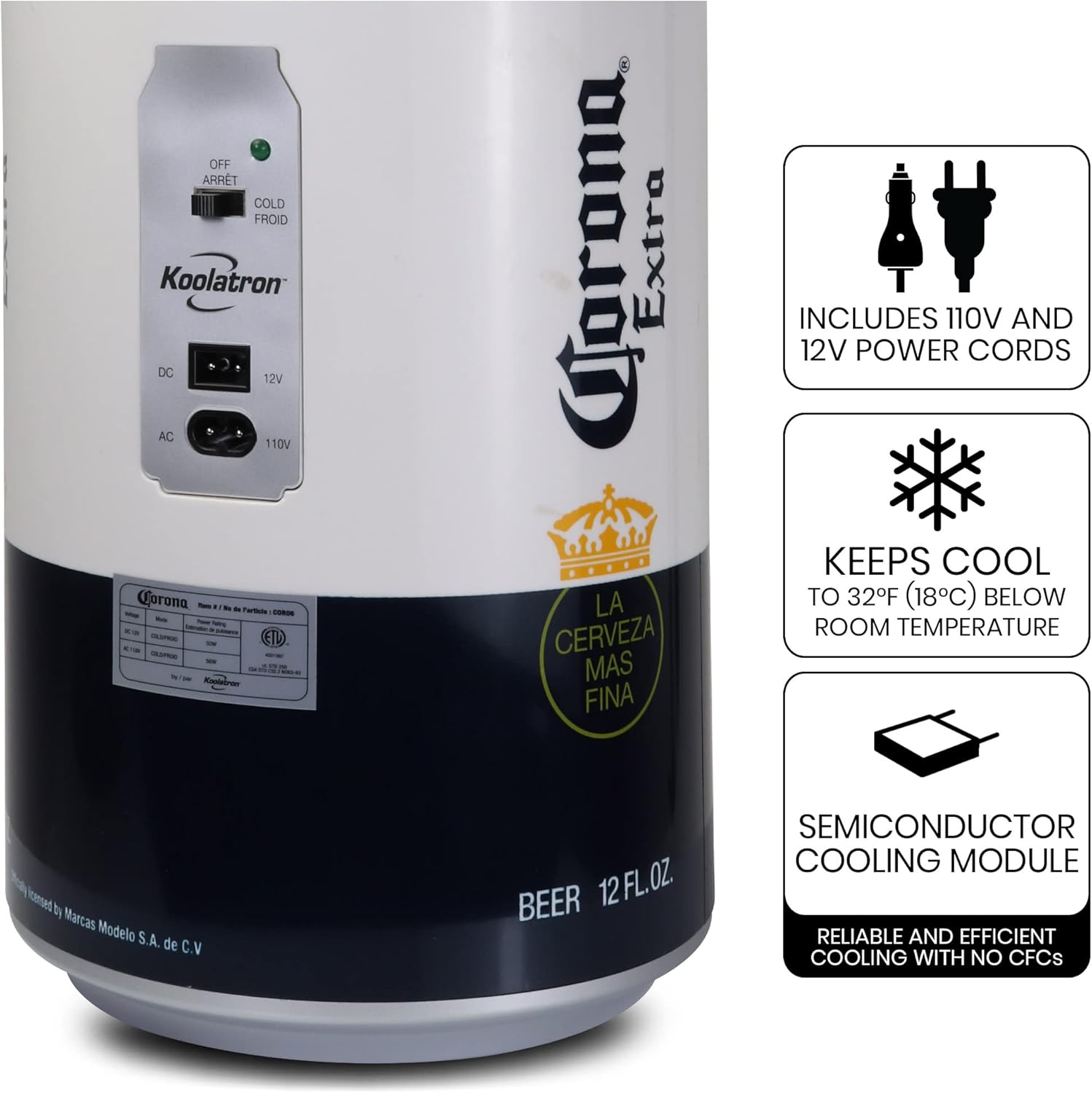 The Corona 8 Can Moveable Mini Fridge is the proper answer! This distinctive 5.4L (5.7 qt) moveable cooler with an attention-grabbing can design, detachable shelf, and modern white and silver end holds 8 commonplace cans. Efficient iceless thermoelectric know-how cools to 32°F (18°C) beneath the encircling temperature and it comes with each AC and 12V DC energy cords to be used at house or on the go.