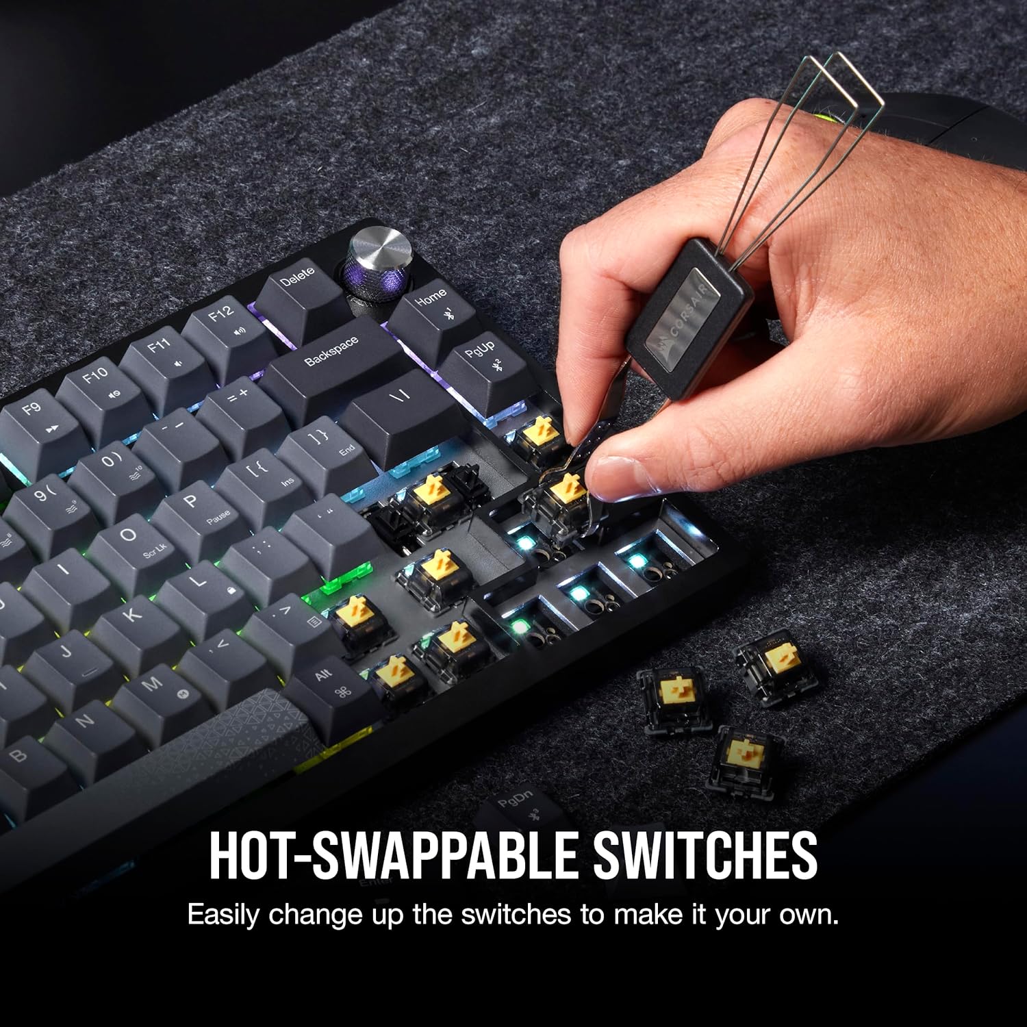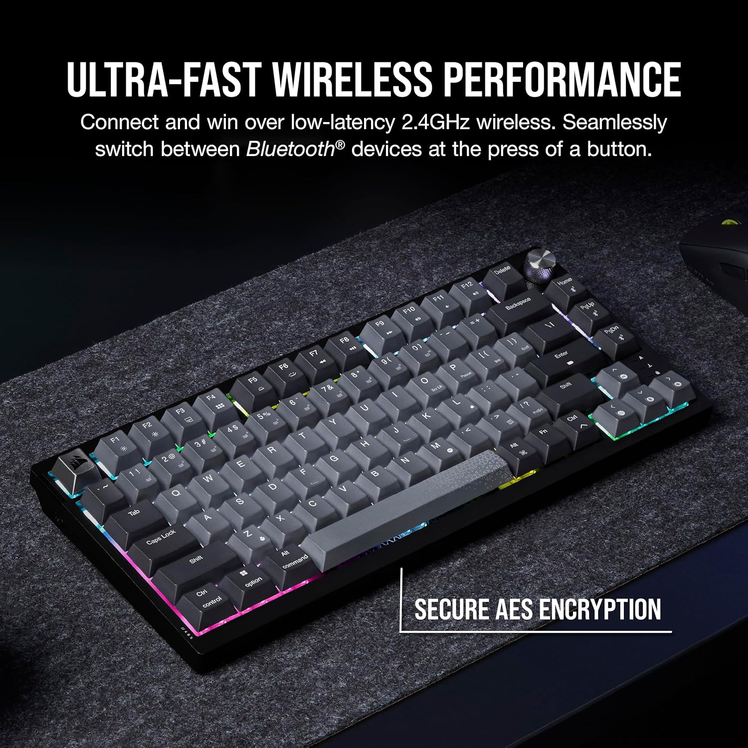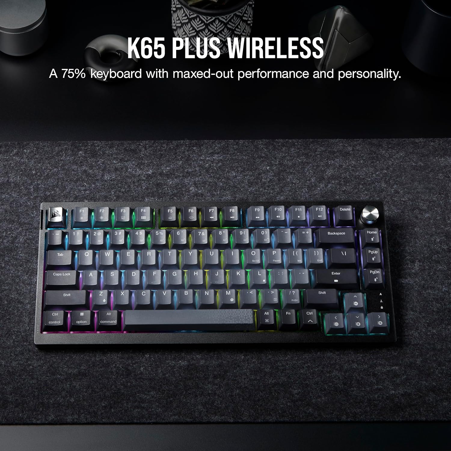 Stand out from the gang with superior ability and distinctive design. The CORSAIR K65 PLUS WIRELESS is a 75% gaming keyboard that maxes out on efficiency and persona. Step up your swap sport with pre-lubricated CORSAIR MLX Crimson linear switches that make every keystroke silky clean and responsive. Built-in sound dampening tempers annoying clacks and pings, so you possibly can get pleasure from delicate, nice acoustics as you play and kind. Simply connect with PC, Mac, and different gadgets through ultra-fast 2.4GHz wi-fi or Bluetooth, and energy by means of your taking part in classes for longer than ever – as much as 266 hours on a single cost. On the K65 PLUS WIRELESS, ability meets type.