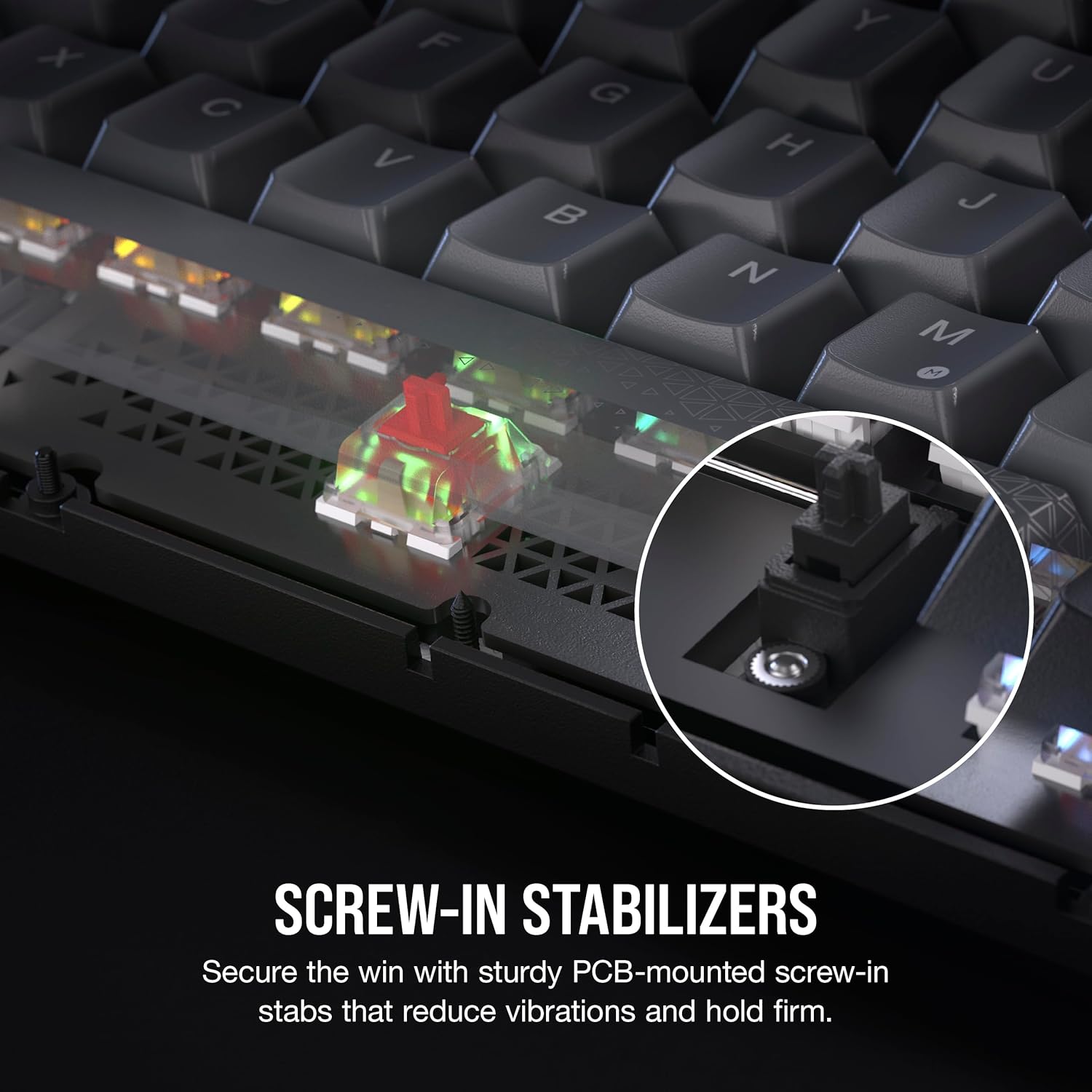 CORSAIR MLX Crimson Switches: Pre-lubricated CORSAIR MLX Crimson linear mechanical switches provide a silky clean, responsive keypress for gaming and typing.