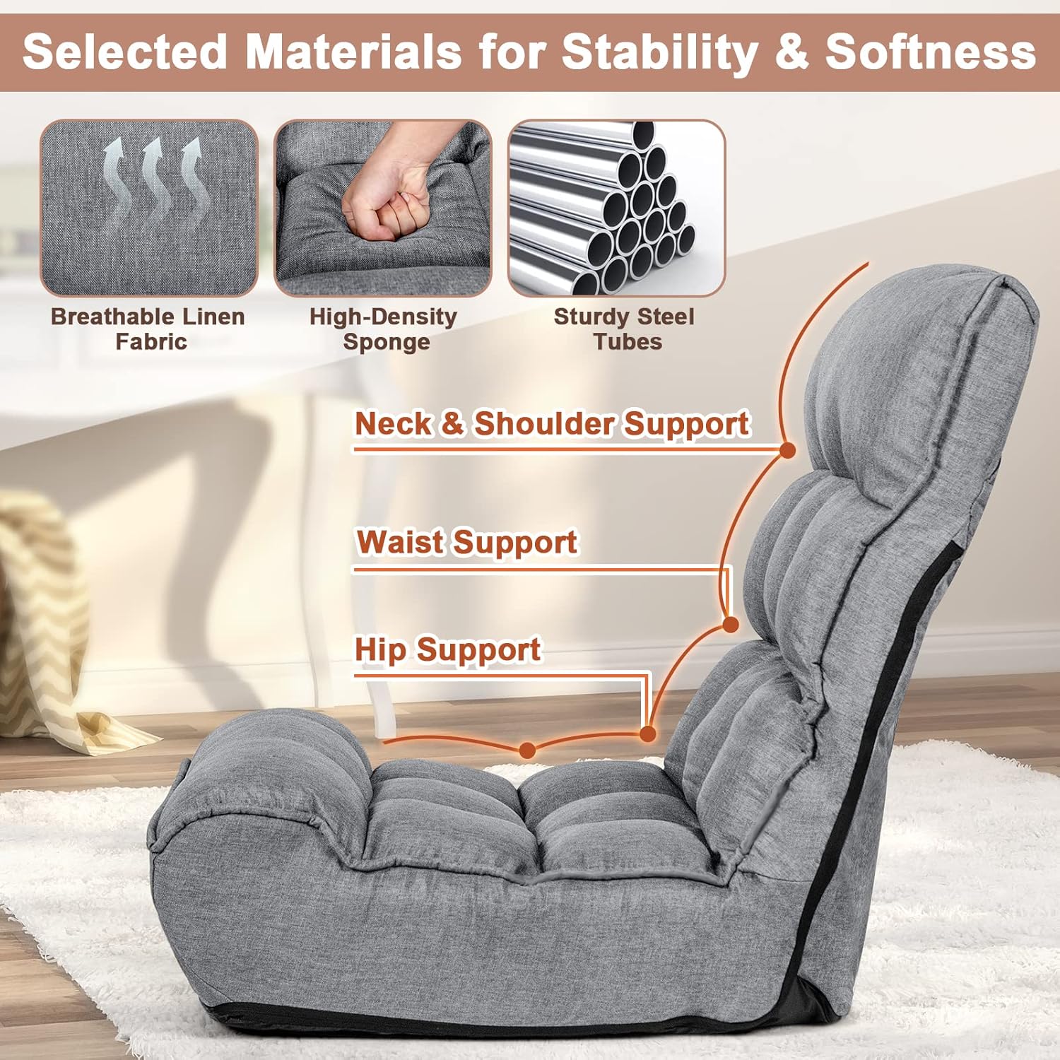 The metal body is crammed with high-density sponge and upholstered with breathable linen cloth. Subsequently, the ground gaming chair offers glorious consolation with none stuffy emotions. The pinnacle is 5-level adjustable and backrest is 4-level adjustable, permitting for a custom-made place to intently help your physique. The ground chair may also be folded for simple storage. There are different particulars designed for customers. With aspect pockets, you may retailer magazines, photographs, controllers and varied gadgets inside attain. In several events, the ground gaming chair performs a special position. You should utilize it in the lounge, bed room and examine as a meditation chair, gaming chair and studying chair. Lastly, it requires no meeting, you may immediately use it for enjoyment.