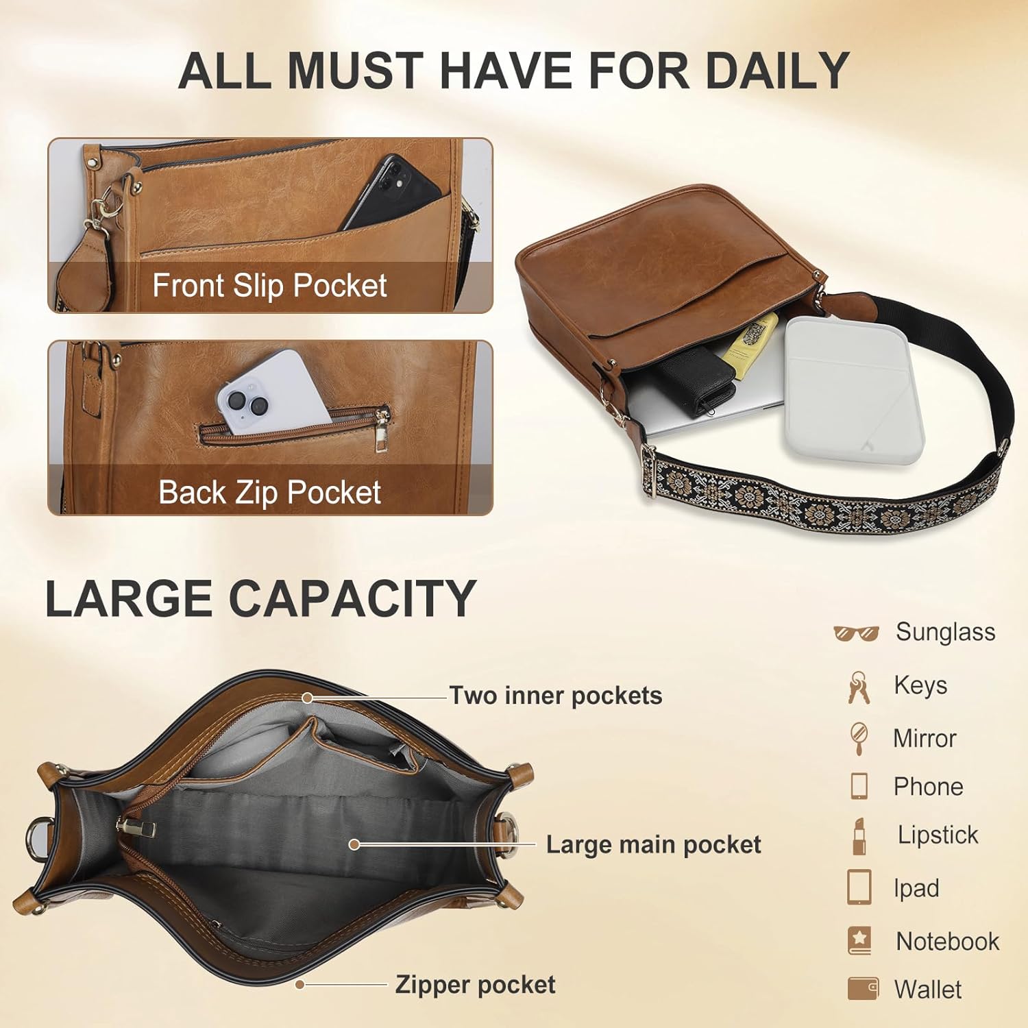 Be the first to review “Crossbody Luggage for Ladies Elegant Vegan Leather-based Hobo Purses with 2pcs…”