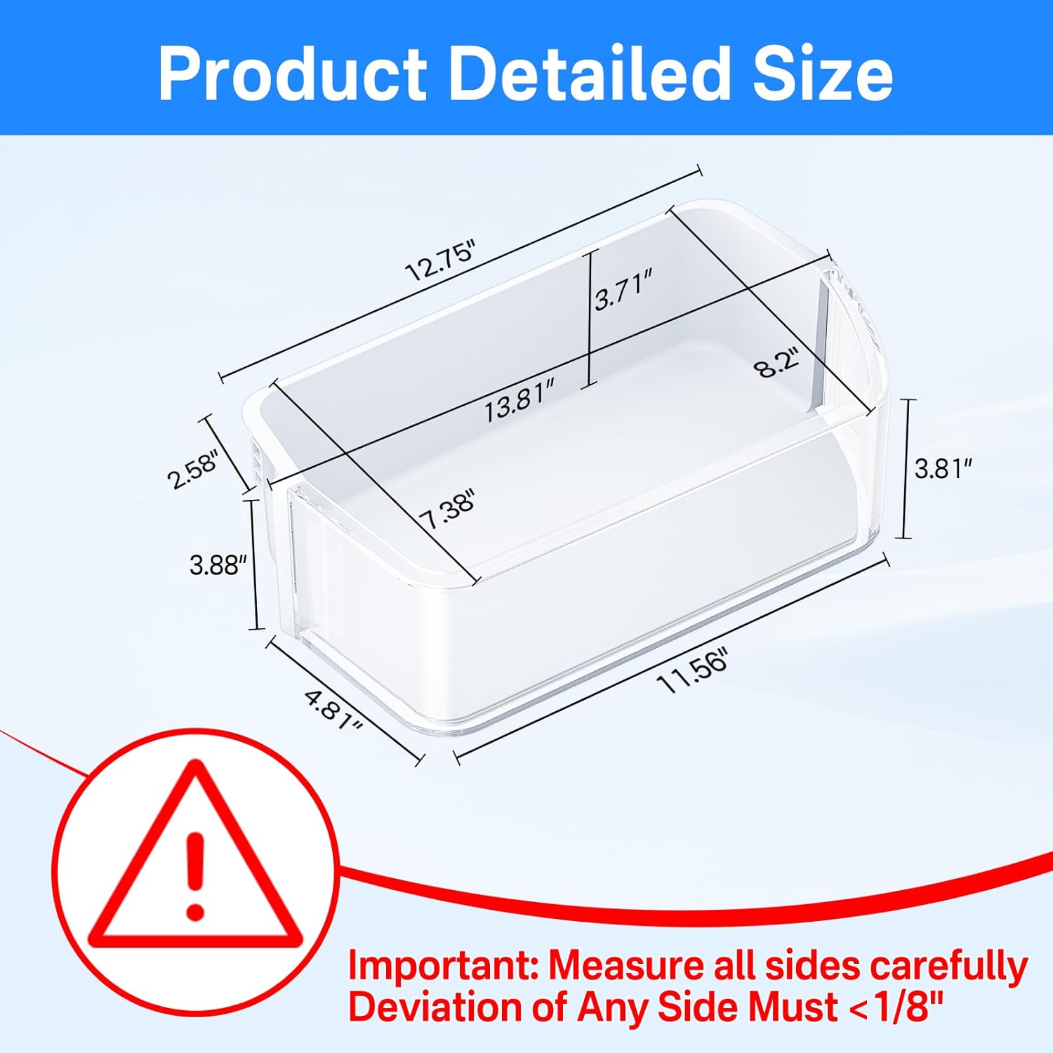 Learn how to Verify Compatibility Earlier than Buying: Step 1: Verify Mannequin Quantity: Discover your fridge’s mannequin and serial quantity on the underside left exterior or inside the highest compartment. Guarantee it matches the listed appropriate fashions. Step 2: Appropriate Placement: Just for higher cabinets of proper facet (Notice: It would NOT match the underside slots or the freezer-side door). Step3: Test Dimensions: Please consult with the detailed measurement in our third picture to measure your fridge bin in all instructions. Necessary: If any facet differs by greater than 1/8″ (0.125″), this bin won’t match. Double-check your measurements to make sure compatibility earlier than buying.