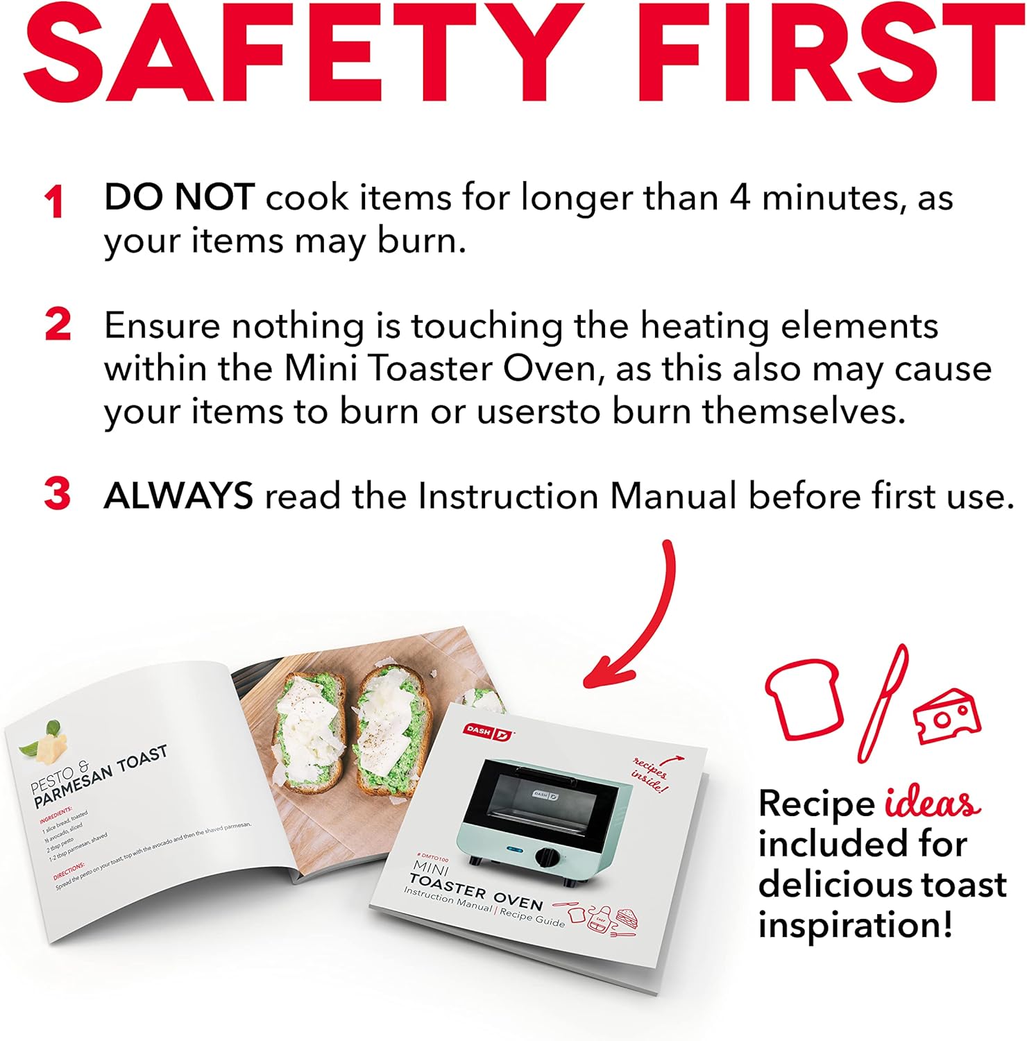 INCLUDES: Backed by a 1-year producer , The 550 watt DASH compact toaster oven consists of baking tray, oven rack, crumb tray, recipe ebook and recipe database entry (all non-electric elements are simply cleaned)