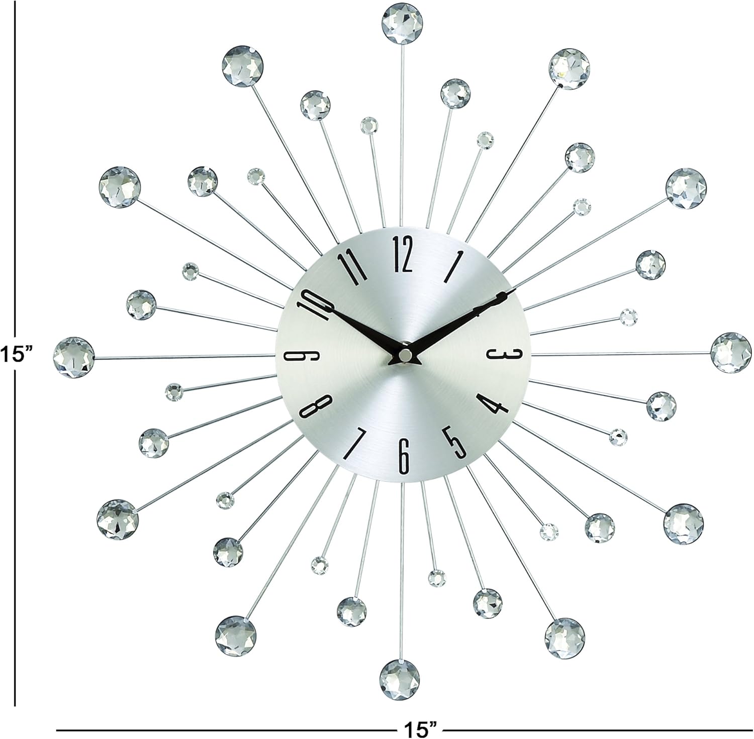 Add a touch of glamour to your own home with this silver clock perfect for light-colored inside types. Requires 1 AA battery. Battery not included. This merchandise ships in 1 carton. Options Arabic numerals for the hour markers. The clock mechanism runs silent. Iron wall clock makes an amazing reward for any event. Merchandise comes with keyhole slots for a vertical grasp; nails and screws usually are not included. Appropriate for indoor use solely. It is a single wall clock. Glam fashion.