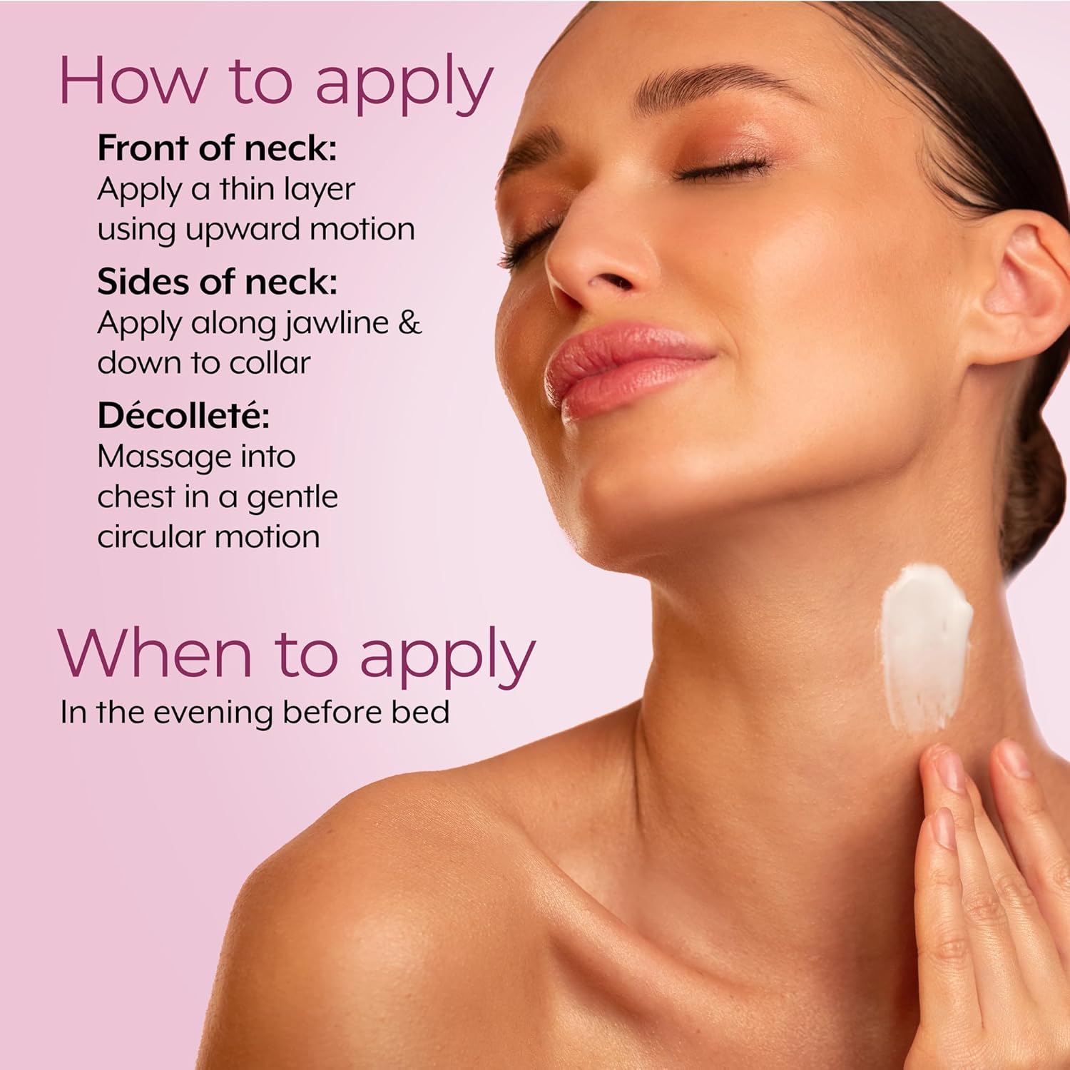 CONSUMER TESTED – 95% of girls stated the pores and skin on their neck and chest regarded firmer after simply 4 weeks. After 8 weeks 100% stated their neck and chest felt smoother, and 92% stated the wrinkles on their neck and chest regarded improved.