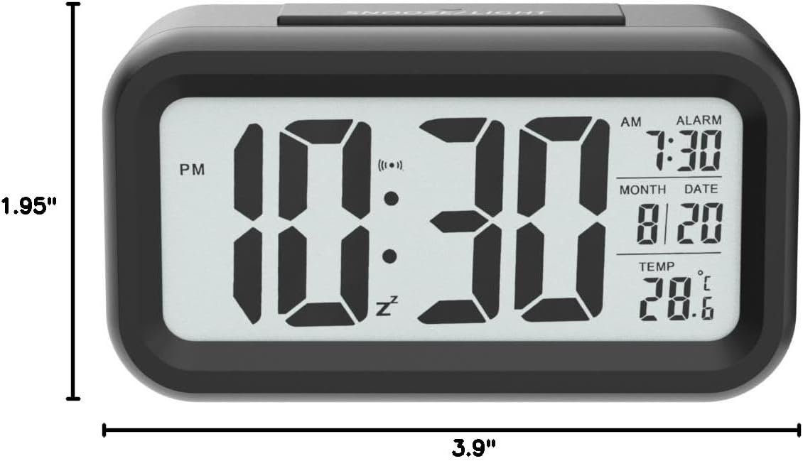 【Good Nightlight and Simple to Use】To begin with, Slide to decide on your setting content material, then starting setup; Convertible ℉ / ℃, 12HR / 24HR with easy operation. When the SENSOR button is turned on, the Alarm clock will routinely emit a tender blue gentle at darkish when turned off, you’ll be able to simply press the SNOOZE/LIGHT button to gentle the background for five seconds