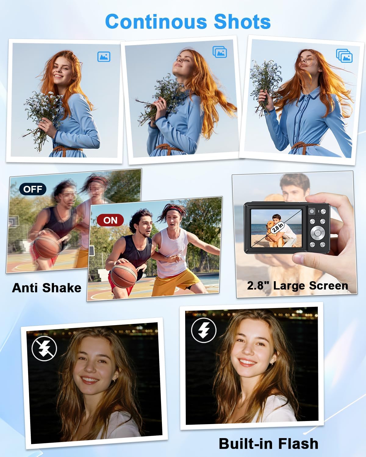 【Twin Digicam System with Autofocus】One Key turns entrance digicam to rear digicam, the vlogging digicam captures superb pictures from any angle. Plus, the small digital digicam options responsive autofocus and flash for sharp, high-quality pictures—whether or not you’re taking pictures portraits, journey scenes, or night time images.