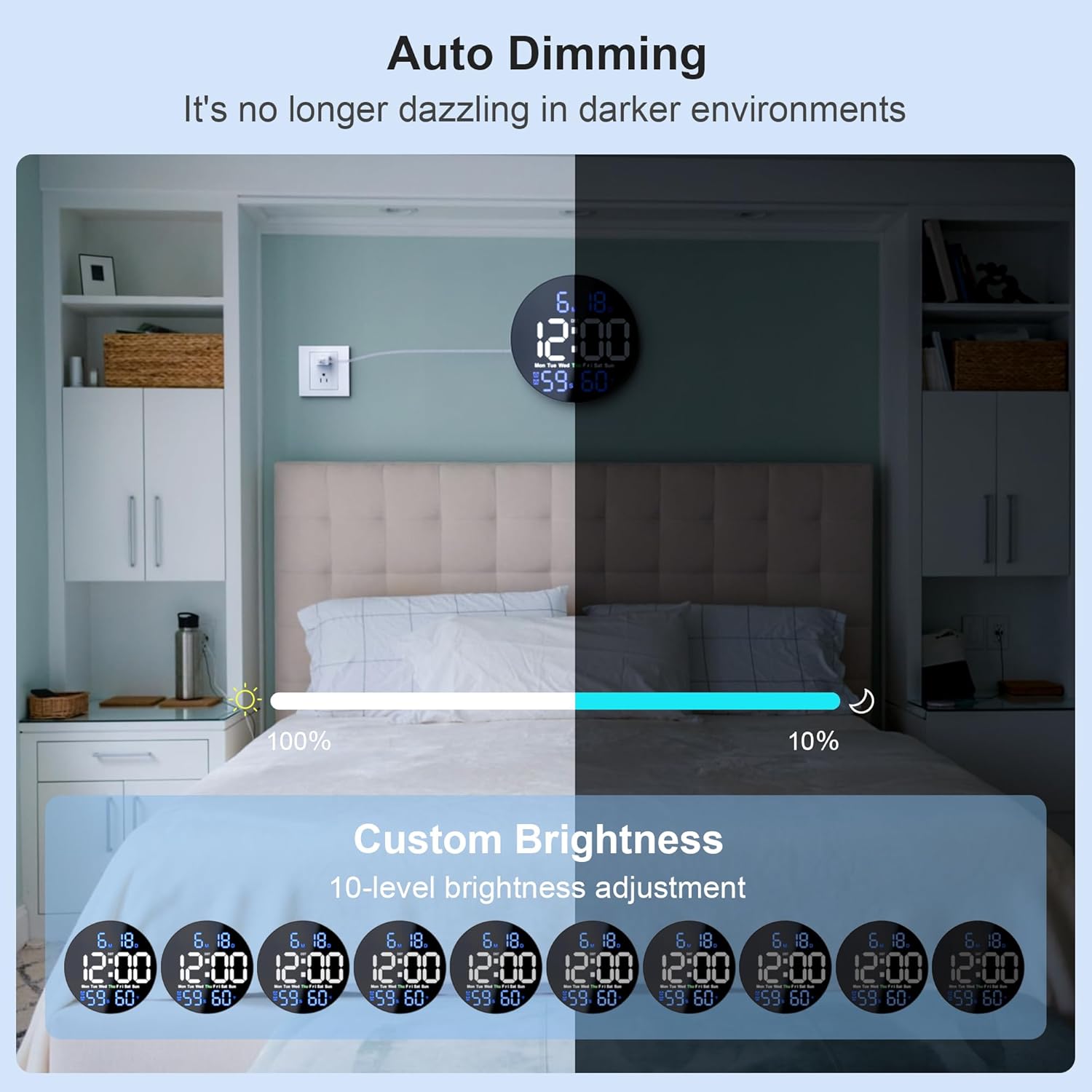 Wall Clock for Bed room Get pleasure from peace and quiet: With the power to mute button sounds, it permits you to set or modify the clock with out disturbing others, making silent wall clocks good for late-night changes or quiet environments to the setting.