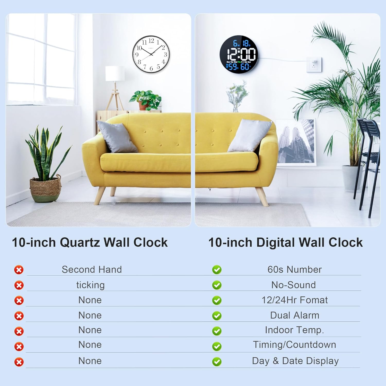 Digital wall clock Twin Alarm Clock: Start your days with the morning chime throughout weekdays, or one other time weekend tone with a digital wall clock. This twin alarm clock helps hold your routine easy, making certain you are all the time tuned in to what issues with a digital wall clock.