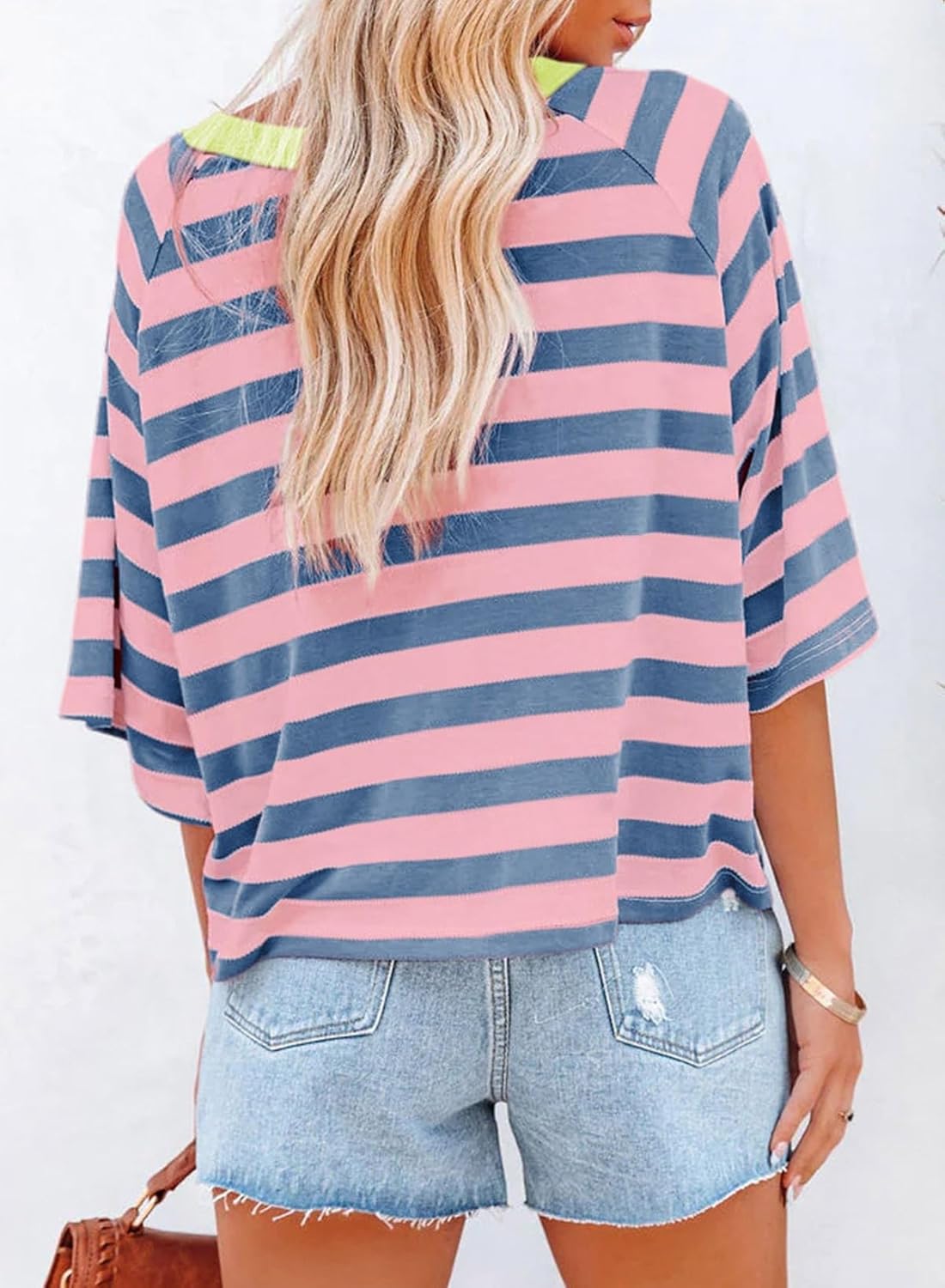 Dokotoo Womens Summer time Tops 2025 Fashionable Striped Unfastened T Shirts 11