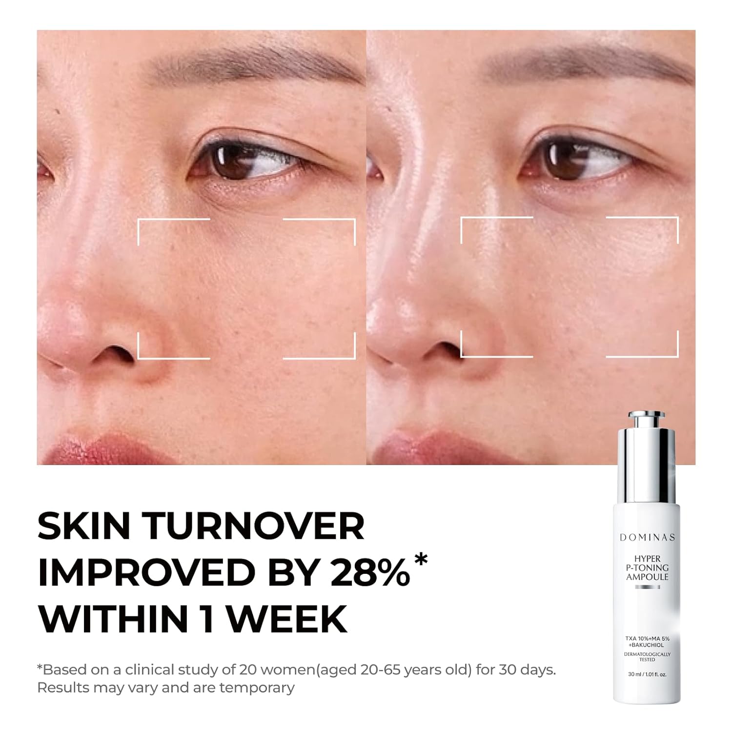 DOMINAS Hyper P-Firming Ampoule (30ml/1.01fl oz) – A clinical-grade brightening serum formulated to visibly cut back melasma, darkish spots, and hyperpigmentation from each the floor and deeper pores and skin layers inside simply 2 weeks. Powered by 10% Tranexamic Acid, 5% Mandelic Acid, and 5% Niacinamide for quick, focused outcomes.