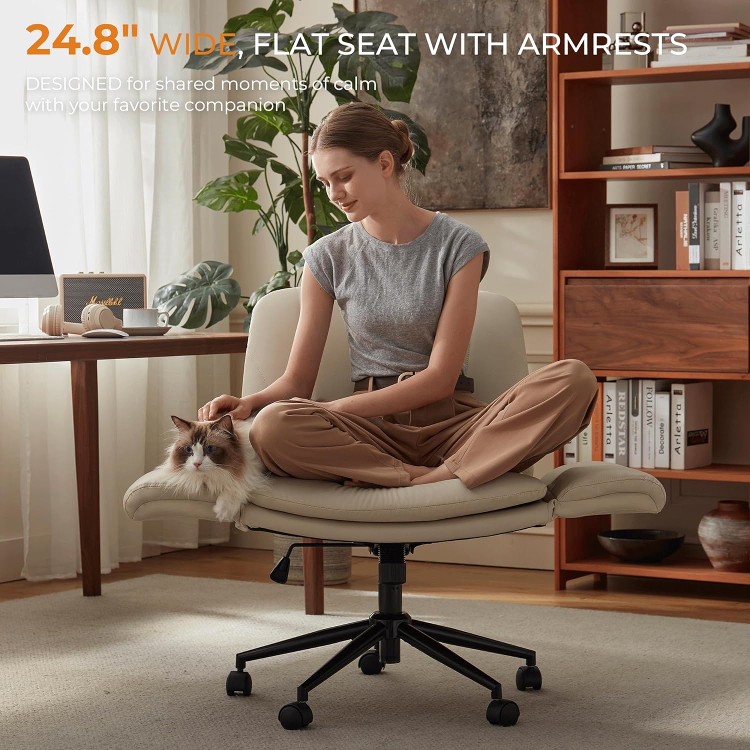 REVOLUTIONARY 5-GEAR ADJUSTABLE ARMRESTS – Expertise unparalleled consolation and assist with our 5 place armrests. Our criss cross chair with arms designed particularly for the cross leg sitting place and past, micro-tilt gears present 15°-70° elbow assist for any posture you select, remodeling how you’re employed, research, loosen up, sport or make-up.