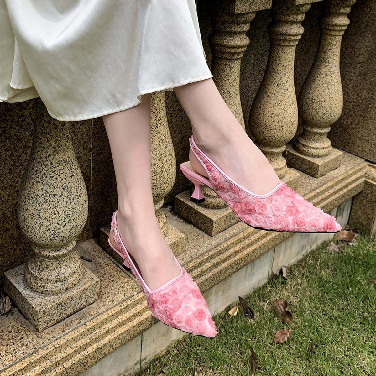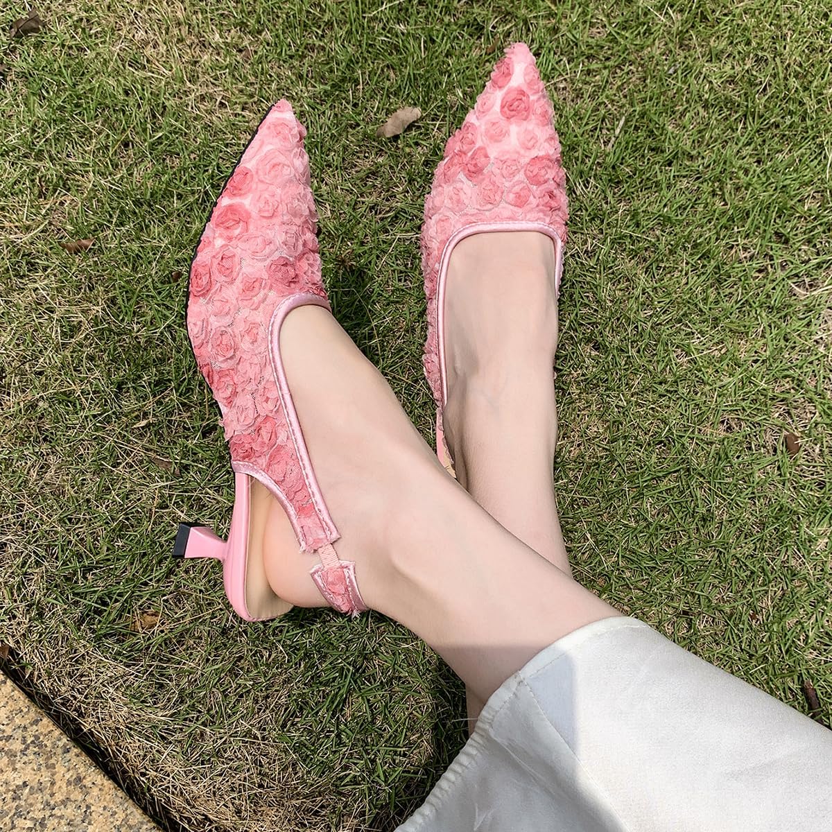 These white high-heel sneakers are exquisitely crafted with delicate lace on the higher. The intricate patterns appear to inform a romantic story. The pointed-toe and slender-heel design are skillfully built-in, outlining elegant strains. The slingback strap provides a contact of style, becoming the foot whereas showcasing refinement. Paired with a easy costume, whether or not strolling within the afternoon backyard or attending a semi-formal enterprise occasion, it lets you exude a pure and delicate allure, similar to the primary breeze in spring, gentle and fascinating.