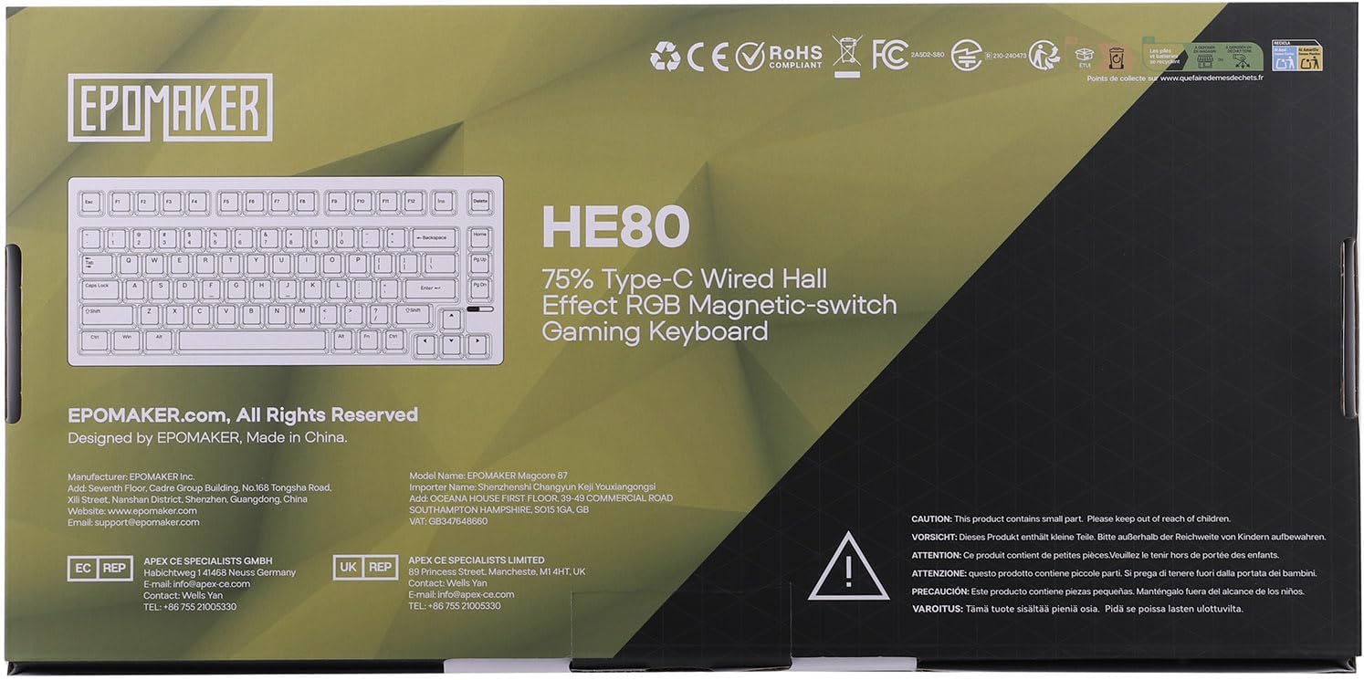 1* HE80 Wired Magnetic Corridor Impact Gaming Keyboard1* Multilingual Handbook (EN, ES, FR, IT, KR, JP, CN)3* Additional Magnetic Swap & 3* Further PBT Keycaps1* 2-in-1 Keycap-and-Swap Puller gaming keyboard