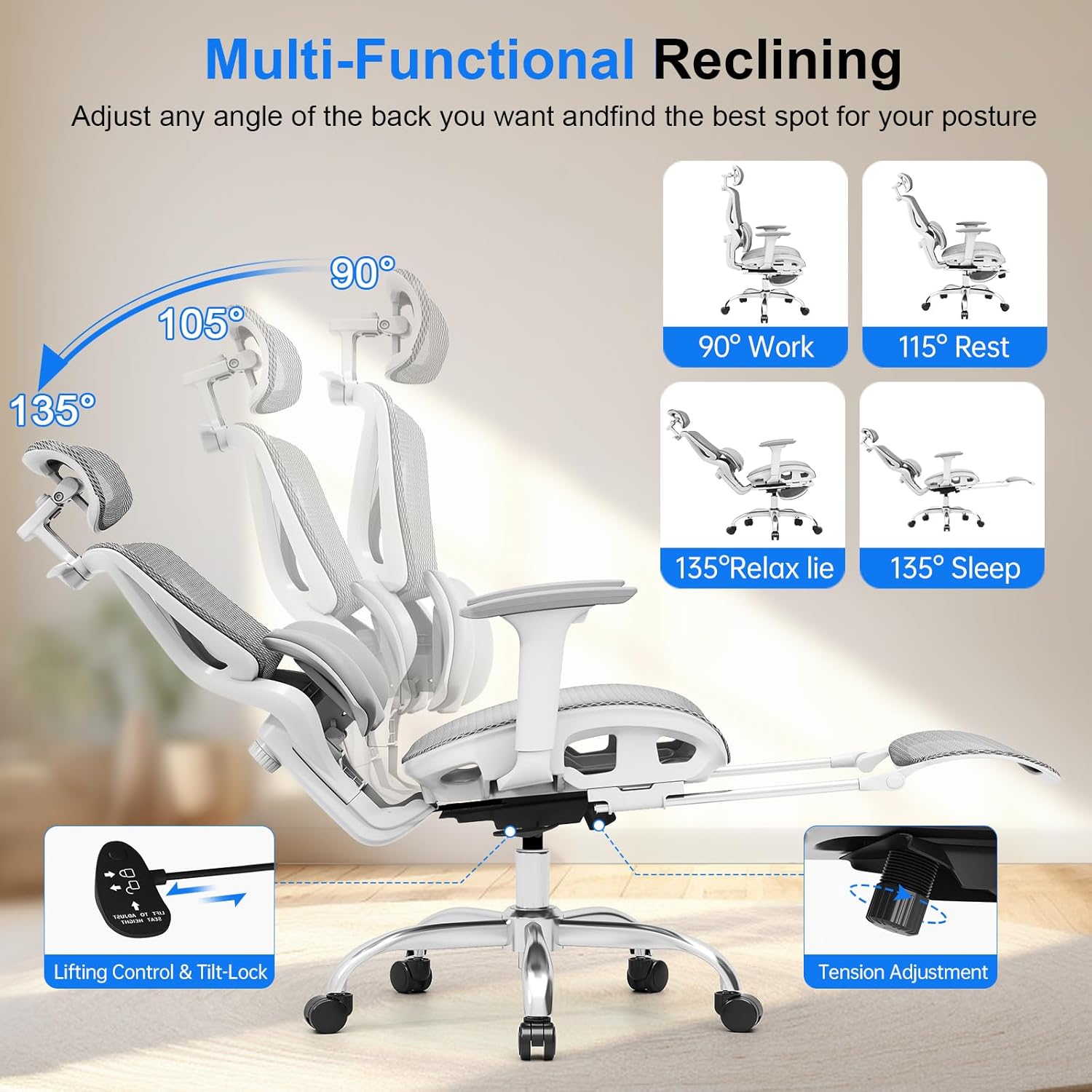 MULTI-FUNCTION – Desk chair comfortable helps top adjustment and 3-step 90-135° tilt locked with a retractable footrest, simply alter for leisure. The house workplace desk chairs makes use of silent PU wheels that may rotate 360° and transfer easily