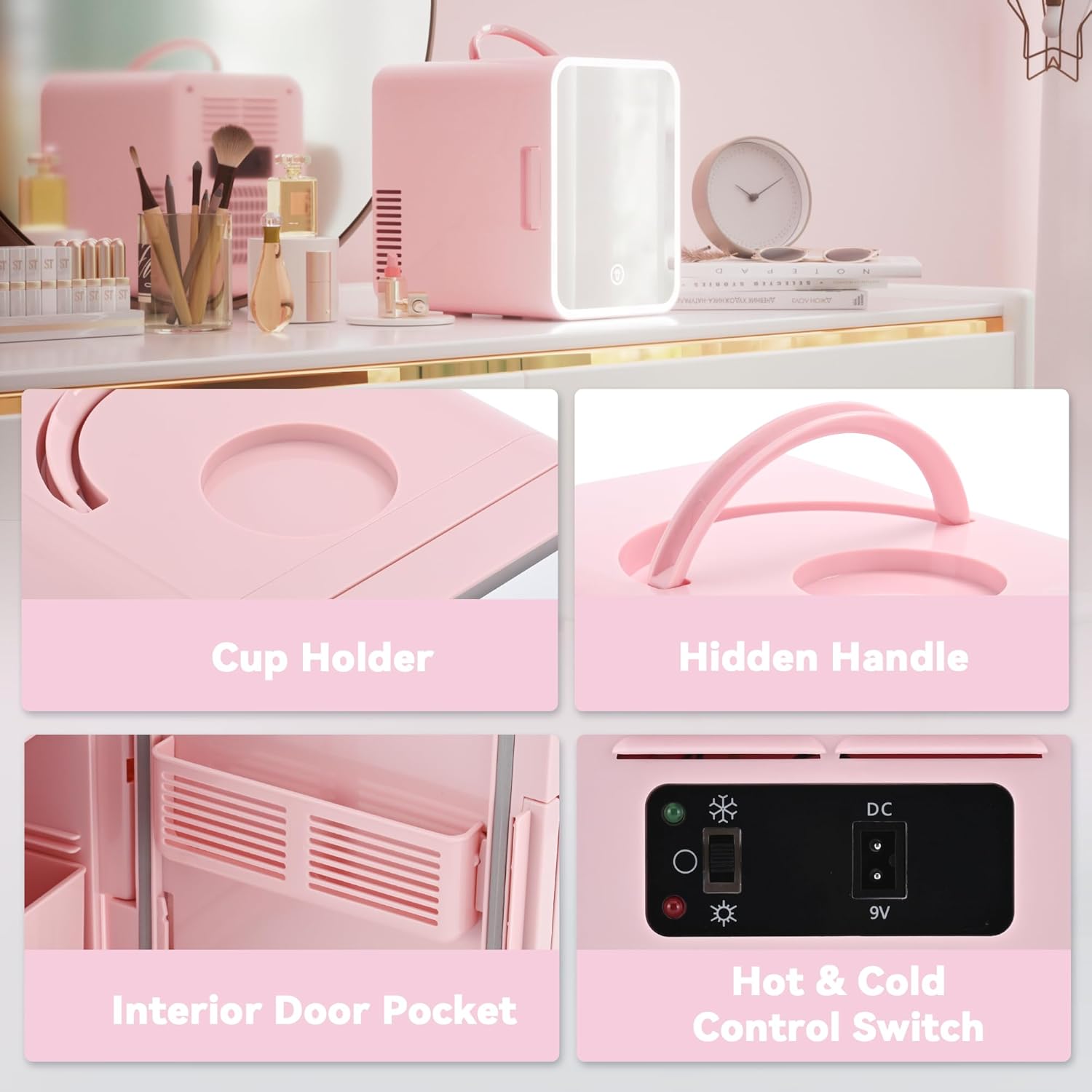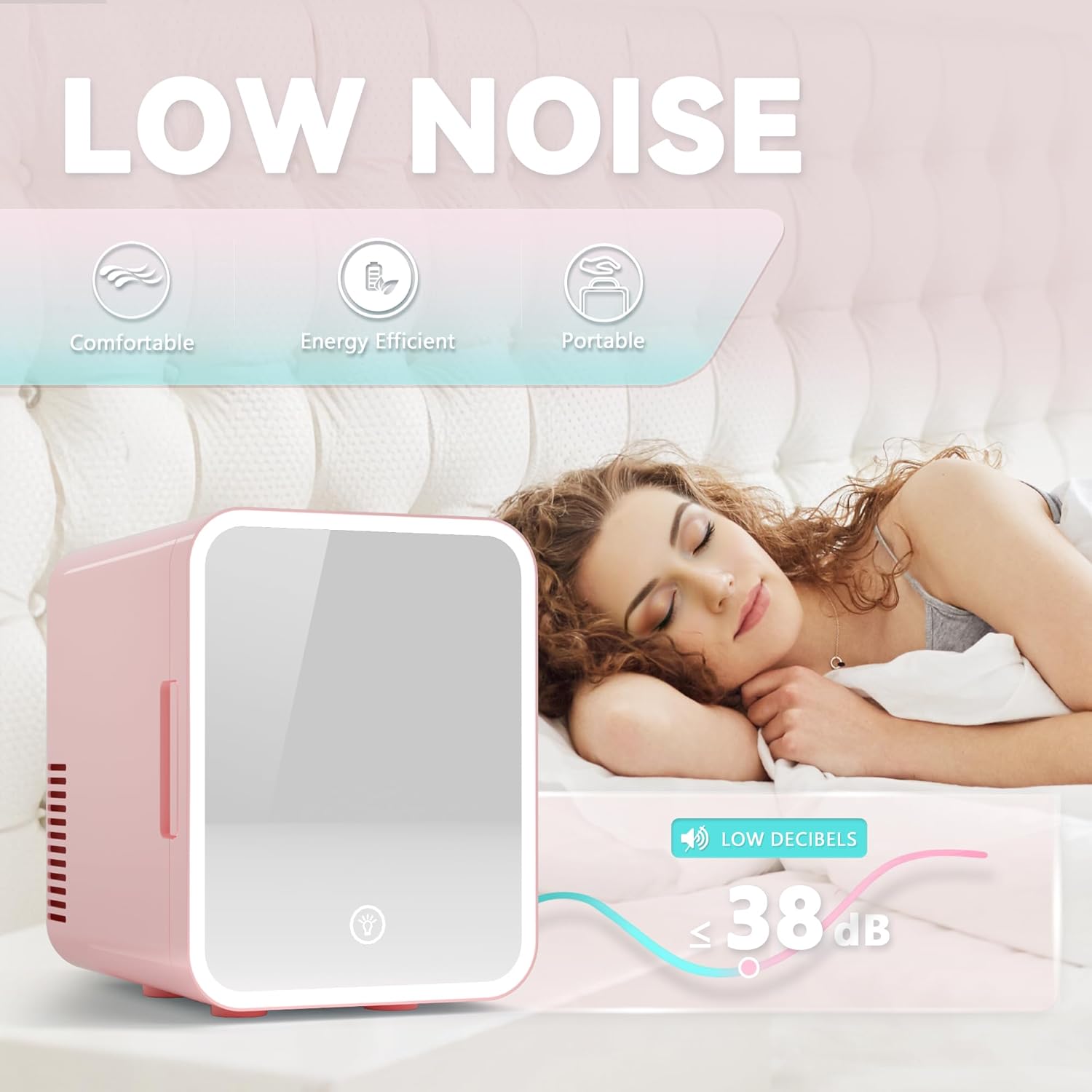 Three-intensity Lighting:This skincare fridge encompasses a touchscreen and a high-definition mirror door, geared up with built-in LED lights that supply three adjustable brightness ranges. Whether or not in brilliant pure gentle or a delicate lighting surroundings, this mini make-up fridge supplies preferrred illumination, serving to you obtain the perfect lighting for skincare and make-up