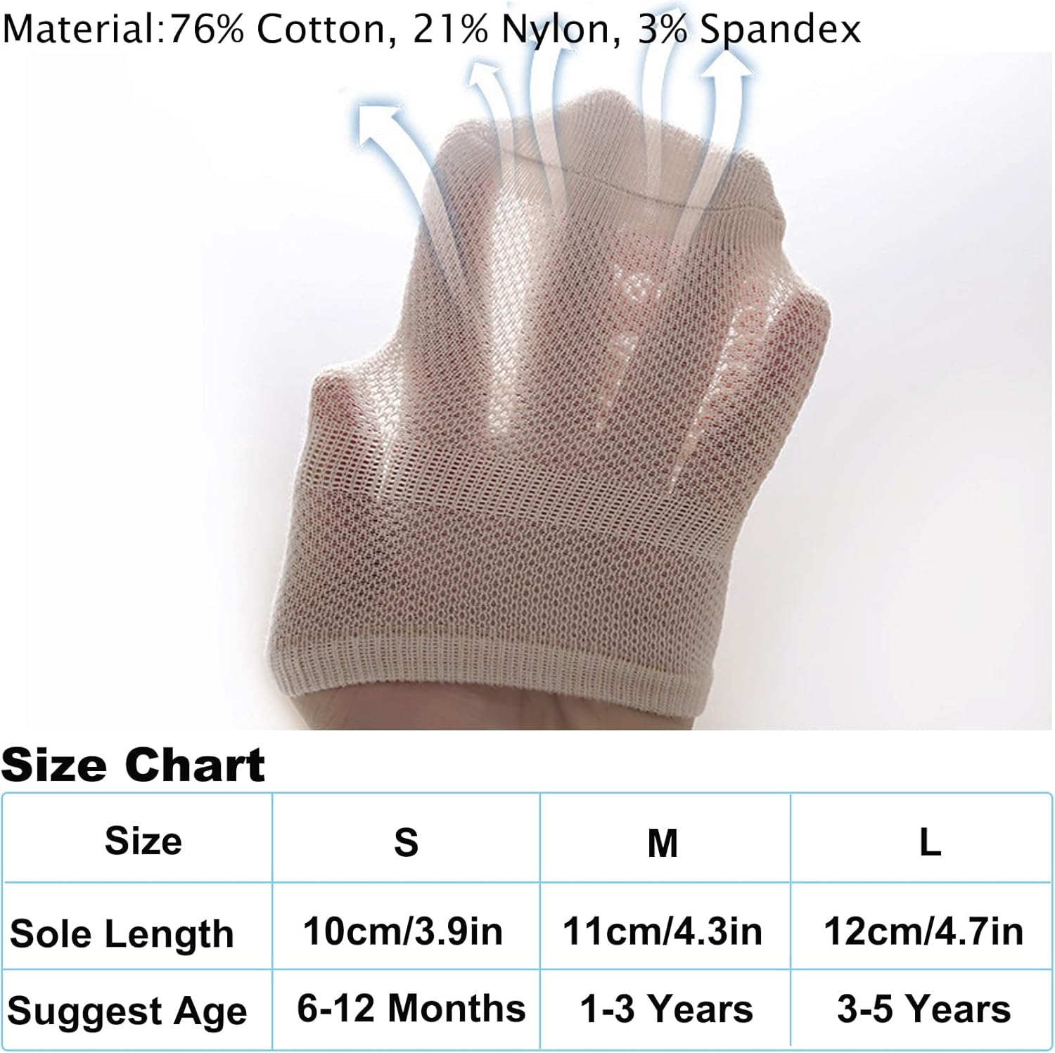 Anti-Skid GrippersSoft and breathable3 sizes for select, S/6-12 Months, M/1-3 years, L/3-5 yearsSet of 5 completely different colours and patternsSuitable for all seasonsCare Directions: Machine wash chilly with like colours. Please don’t bleach and dry clear. They would not torn or deformed by washer.