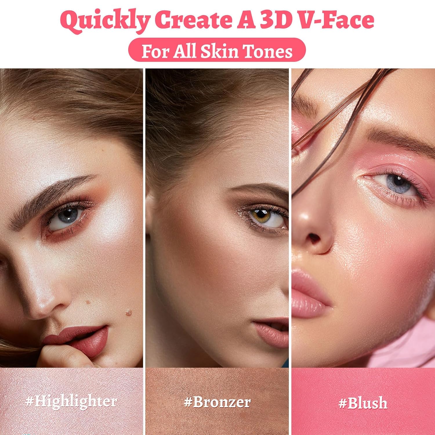 3-in-1 cream texture straightforward to use and mix, Create a three-dimensional and brilliant blush contour highlighter make-up look