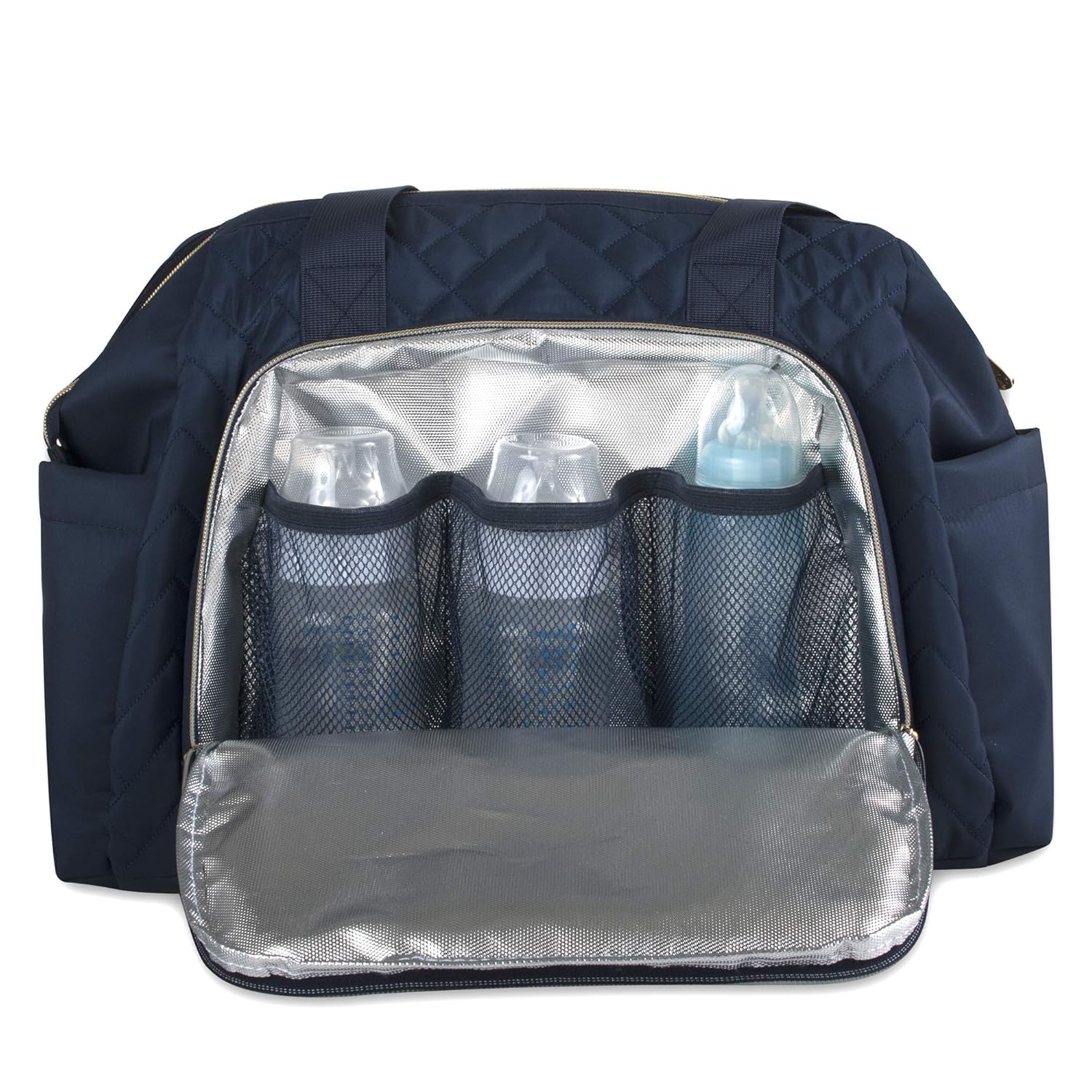 7 BOTTLE BABY BAG: Entrance silver foil insulated bottle pocket holds as much as 3 bottles on the good temp, whereas inside & facet slip pockets every have 2 extra pockets! Bottles all over the place! Preserve milk, juice, water, components, & snacks contemporary & prepared at a second’s discover.