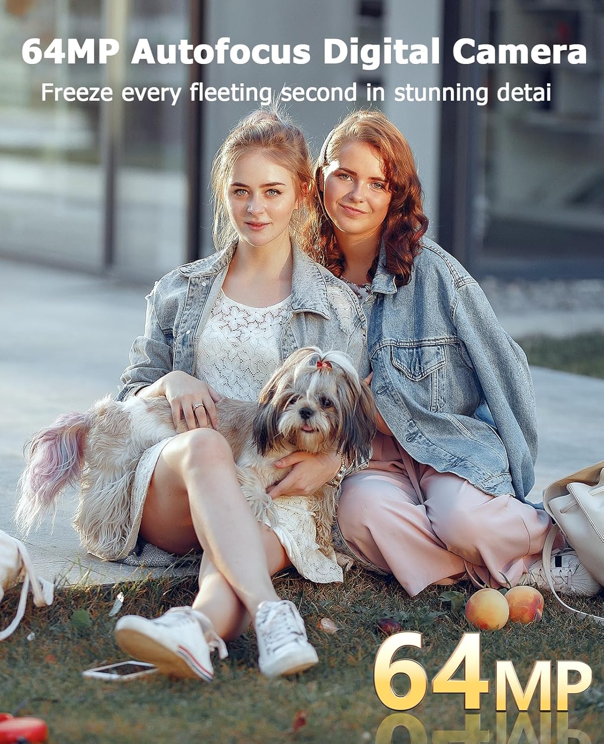 【6K 64MP Digital Cameras】Seize gorgeous element with 64MP ultra-clear photographs and 6K crisp video vlogging cameras. Excellent for vlogs, journey moments, or artistic initiatives, the autofocus ensures sharp photos and easy monitoring.