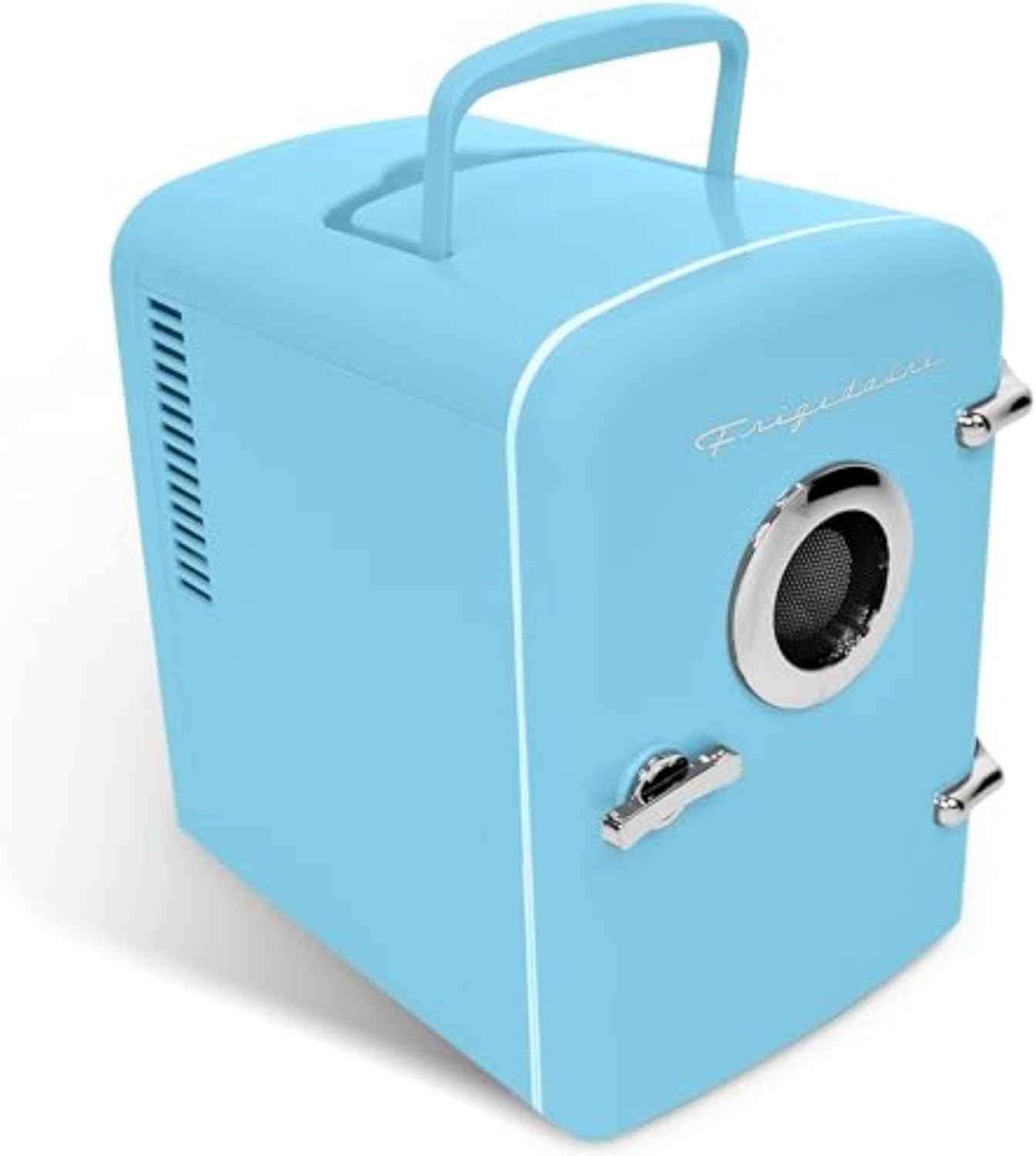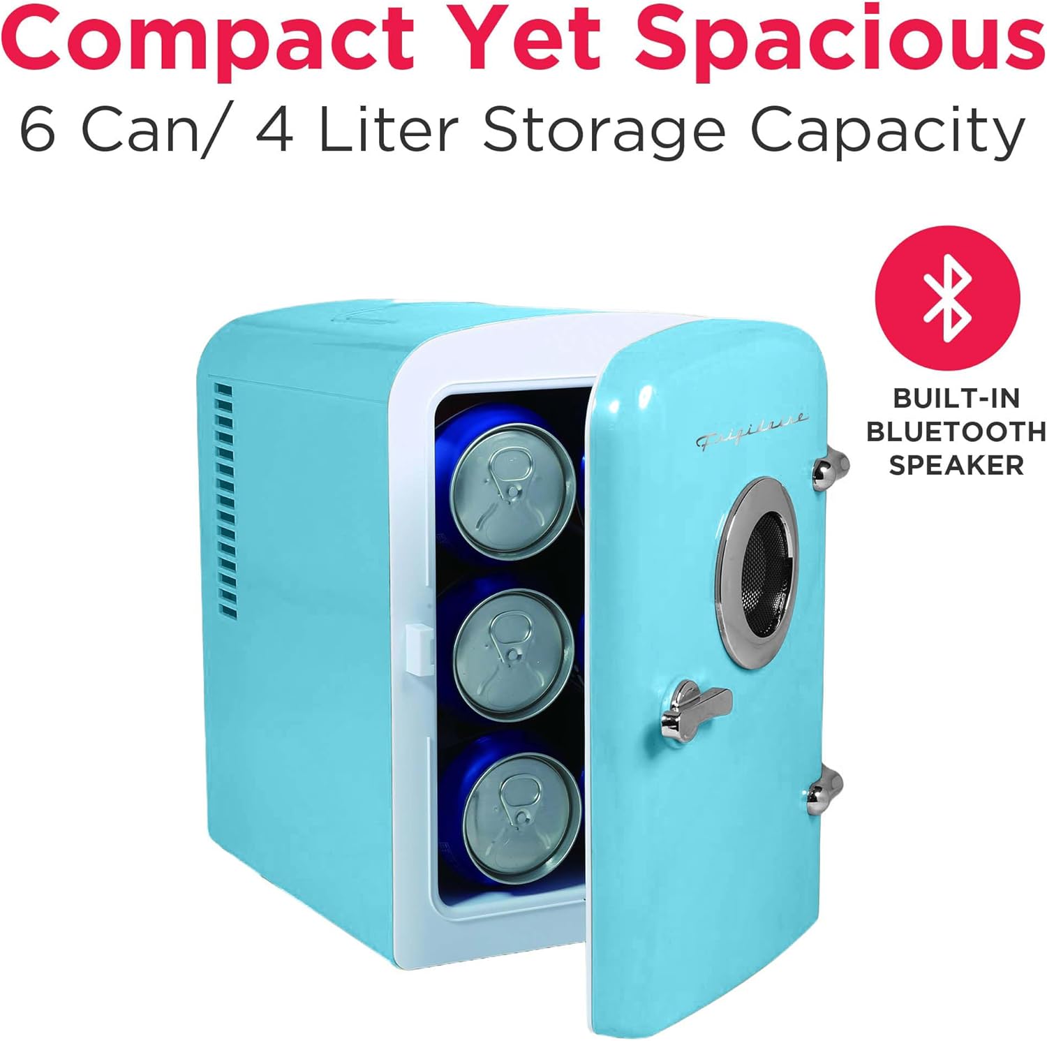 “CURTIS EFMIS151 Frigidaire Mini Transportable Compact Private Fridge Cools, 4 Liter Capability, 6 Cans, Make-up, Skincare, Refrigerant-Free & Eco Pleasant, Contains House Plug, Blue”.