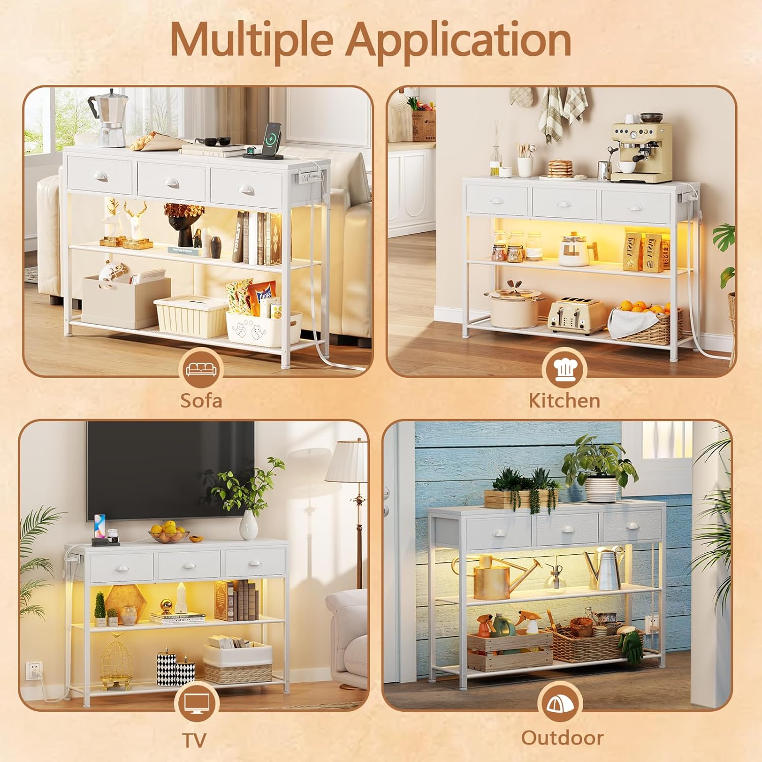 Rework your entryway with white entryway desk—that includes space-saving storage with 3 drawers and three tiers, multi-color LED lighting with app management, built-in energy retailers for charging, and an anti-tip security design—all wrapped in premium strong wooden building for lasting magnificence