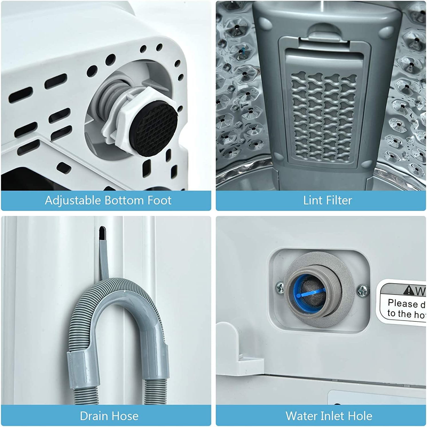 【Humanized Design】: With a clear washer lid, you may verify the standing of your garments at any time whereas utilizing the washer. And one of many ft is adjustable to suit for uneven floor. As well as, little one lock mode makes this washer be locked so that it’ll not affected by kids.