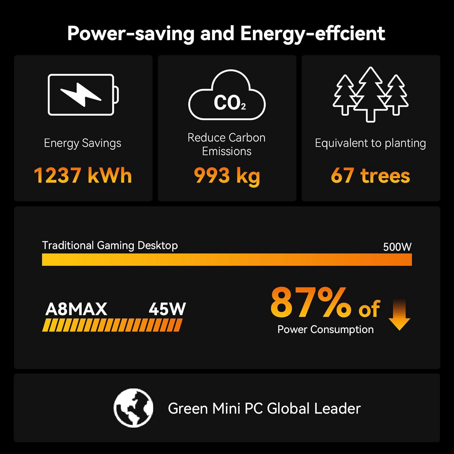 ➐ Unmatched Pace & Connectivity Efficiency – The A8 Max Mini PC options as much as 5 USB 3.2 Gen 2 ports, 1 USB 2.0 port, 2 Sort-C ports, 2 HDMI ports, and an SD card slot, permitting seamless connection to numerous peripherals. For prime-speed knowledge switch, graphics card help, as much as 8K video output, or energy enter, it additionally contains twin USB 4.0 ports.