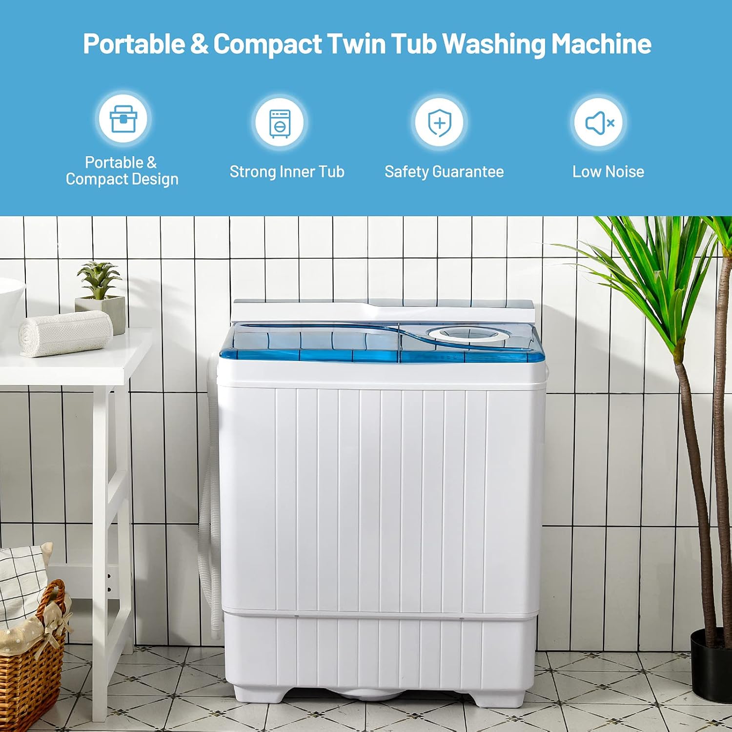 [Powerful Dual Motor]: Outfitted with 280W washing energy and 140W spinning energy, the washer meets the efficiency necessities for highly effective use and helps you save time as nicely. A robust turbine provides high-efficient swirl washing to your garments whereas the high-speed spin can spin dry the garments shortly.